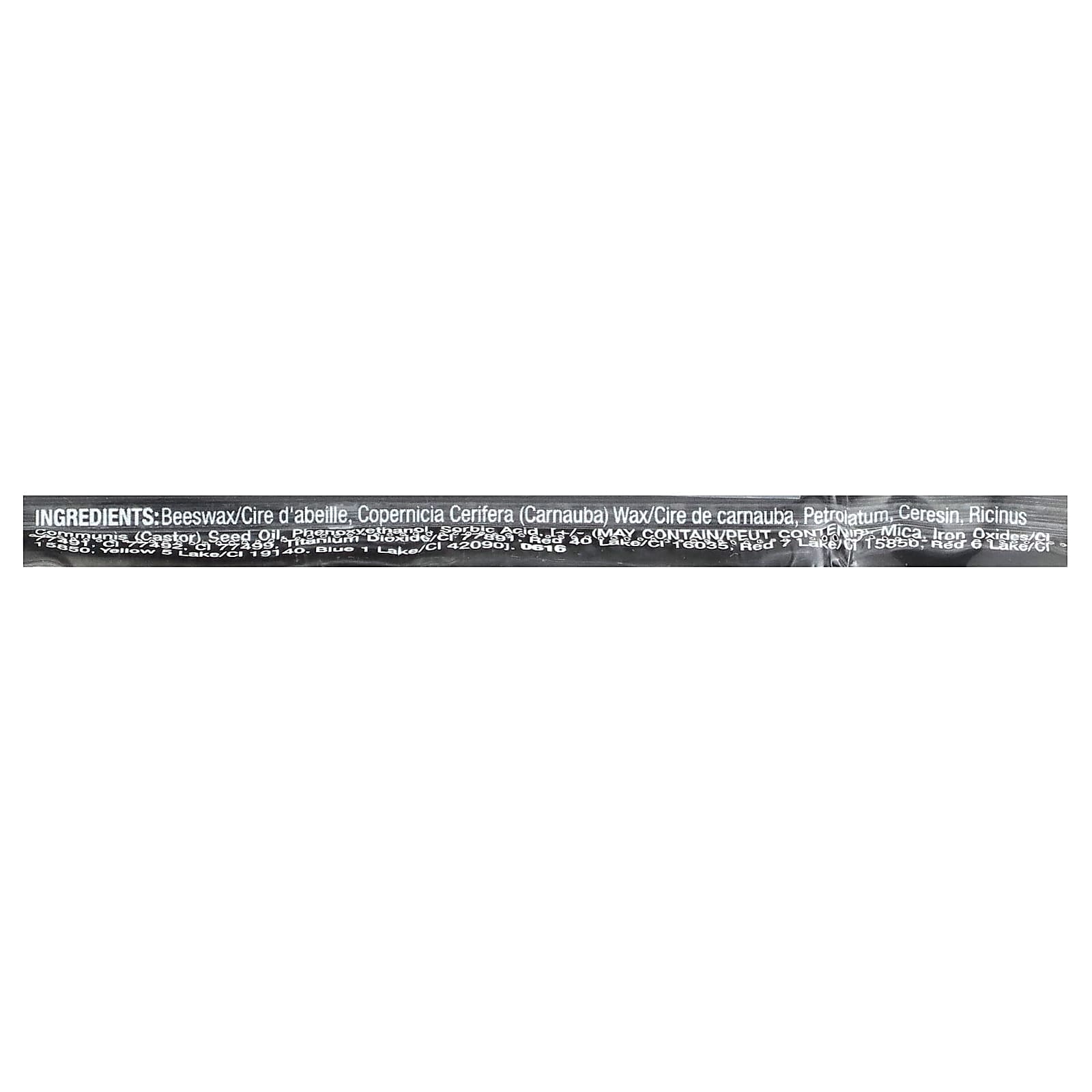 Пчелиный воск, карнаубский воск (Copernicia cerifera), вазелин, церезин, касторовое масло (Ricinus communis), феноксиэтанол, сорбиновая кислота, [может содержать слюду, оксиды железа (CI 77491), CI 77492, CI 77499, диоксид титана (CI 77891), краситель красный 40 лак (CI 16035), краситель красный 7 лак (CI 15851), краситель красный 6 лак (CI 15850), краситель желтый 5 лак (CI 19140), краситель синий 1 лак/CI 42090]