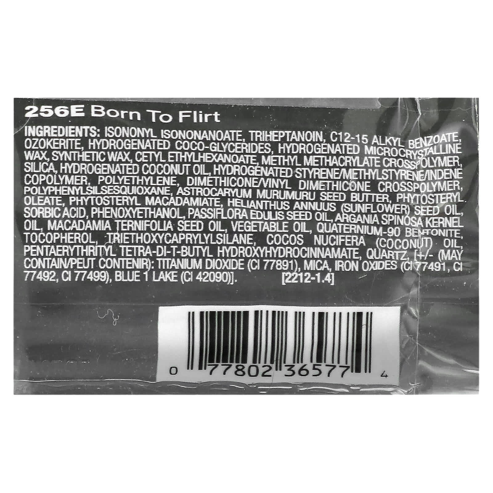 Изононил изононаноат, тригептаноин, C12-15 алкил бензоат озокерит, гидрогенизированные кокоглицериды, гидрогенизированный микрокристаллический воск, синтетический воск, цетилэтилгексаноат, метил метакрилат кроссполимер, диоксид кремния, гидрогенизированное кокосовое масло, гидрогенизированный сополимер стирола/метилстирола/индена, полиэтилен, диметикон/винил диметикон кроссполимер, полифенилсилсесквиоксан, масло семян мурумуру (Astrocaryum murumuru), фитостерил, олеат, фитостерил макадамиат, подсолнечное масло (Helianthus annuus), сорбиновая кислота, феноксиэтанол, масло из семян маракуйи (Passiflora edulis), аргановое масло (Argania spinosa), масло макадамии (Macadamia ternifolia), растительное масло, кватерниум-90 бентонит, токоферол, триэтоксикаприлилсилан, кокосовое масло (Cocos nucifera), пентаэритритил тетра-ди-трет-бутил гидроксигидроциннамат, кварц, [может содержать диоксид титана (CI 77891), слюда, оксиды железа (CI 77491, CI 77492, CI 77499), краситель синий 1 лак (CI 42090)].