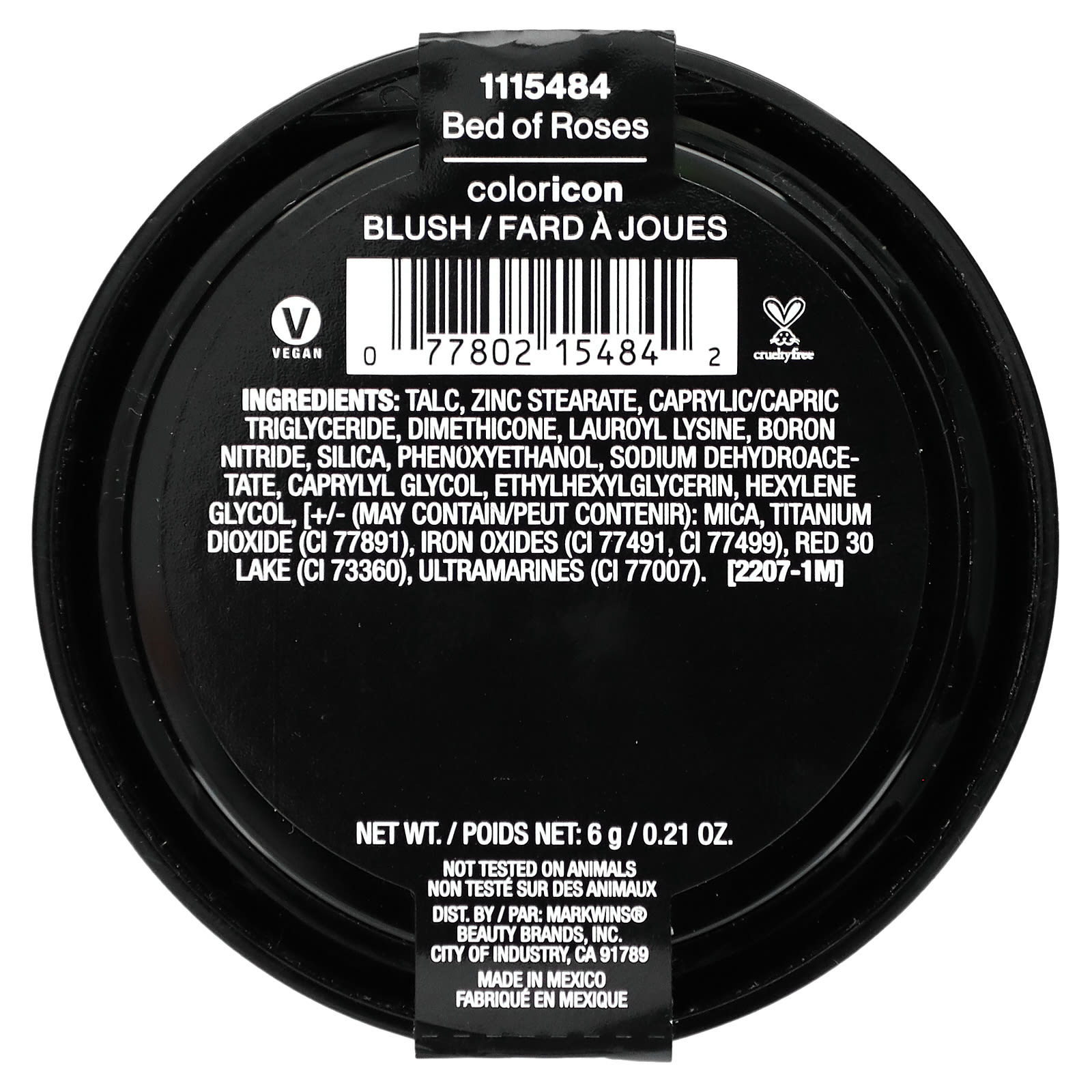Тальк, стеарат цинка, каприловый/каприновый триглицерид, диметикон, лаурил лизин, нитрид бора, диоксид кремния, феноксиэтанол, дегидроацетат натрия, каприлилгликоль, этилгексилглицерин, гексиленгликоль, [+/- (может содержать): слюда, диоксид титана (CI 77891), оксиды железа (CI 77491, CI 77499), краситель красный 30 лак (CI 73360), ультрамарин (CI 77007).