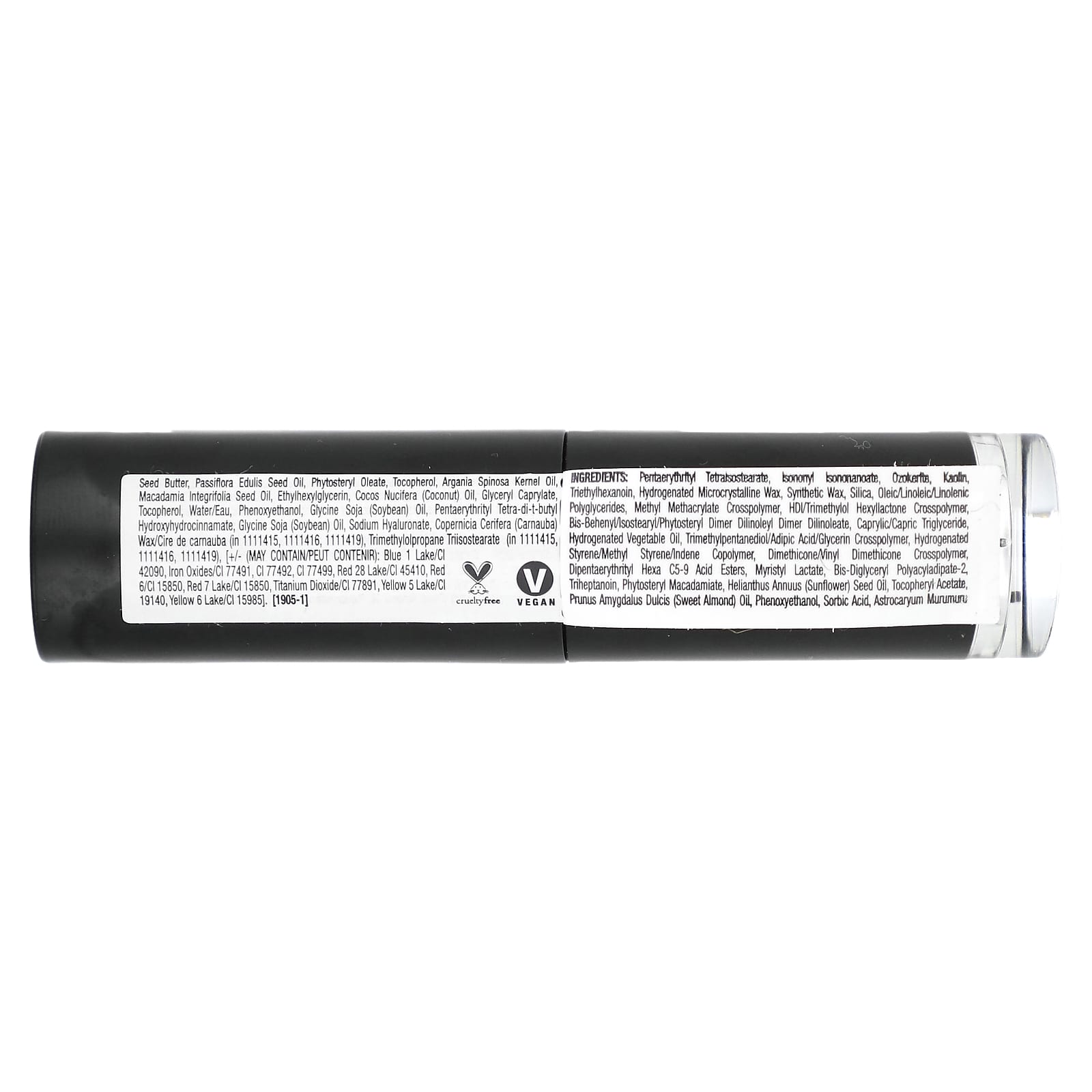 Пентаэритритил тетраизостеарат, изононил изононаноат, озокерит, каолин, триэтилгексаноин, гидрогенизированный микрокристаллический воск, синтетический воск, диоксид кремния, олеиновые/линолевые/линоленовые полиглицериды, метил метакрилат кроссполимер, гександиизоцианат/триметилол хексиллактона кроссполимер, бис-бегенил/изостеарил/фитостерил димер дилинолеил димер дилинолеат, каприловый/каприновый триглицерид, гидрогенизированное растительное масло, триметилпентандиол/адипиновая кислота/глицерин кроссполимер, гидрогенизированный сополимер стирола/метилстирола/индена, диметикон/винил диметикон кроссполимер, дипентаэритрил гекса С5-9 кислотные эфиры, миристил лактат, бис-диглицерил полиациладипат-2, тригептаноин, фитостерил макадамиат, подсолнечное масло (Helianthus annuus), токоферилацетат, масло сладкого миндаля (Prunus amygdalus dulcis), феноксиэтанол, сорбиновая кислота, масло семян мурумуру (Astrocaryum murumuru), масло из семян маракуйи (Passiflora edulis), фитостерил олеат, токоферол, аргановое масло (Argania spinosa), масло макадамии (Macadamia integrifolia), этилгексилглицерин, кокосовое масло (Cocos nucifera), глицерил каприлат, токоферол, вода, феноксиэтанол, соевое масло (Glycine soja), пентаэритритил тетра-ди-трет-бутил гидроксигидроциннамат, соевое масло (Glycine soja), гиалуронат натрия, карнаубский воск (Copernicia cerifera) (в 1111415, 1111416, 1111419), триметилолпропан триизостеарат (в 1111415, 1111416, 1111419), [может содержать краситель синий 1 лак (CI 42090), оксиды железа (CI 77491, CI 77492, CI 77499), краситель красный 28 лак (CI 45410), краситель красный 6 (CI 15850), краситель красный 7 лак (CI 15850), диоксид титана (CI 77891), краситель желтый 5 лак (CI 19140), краситель желтый 6 лак (CI 15985)].