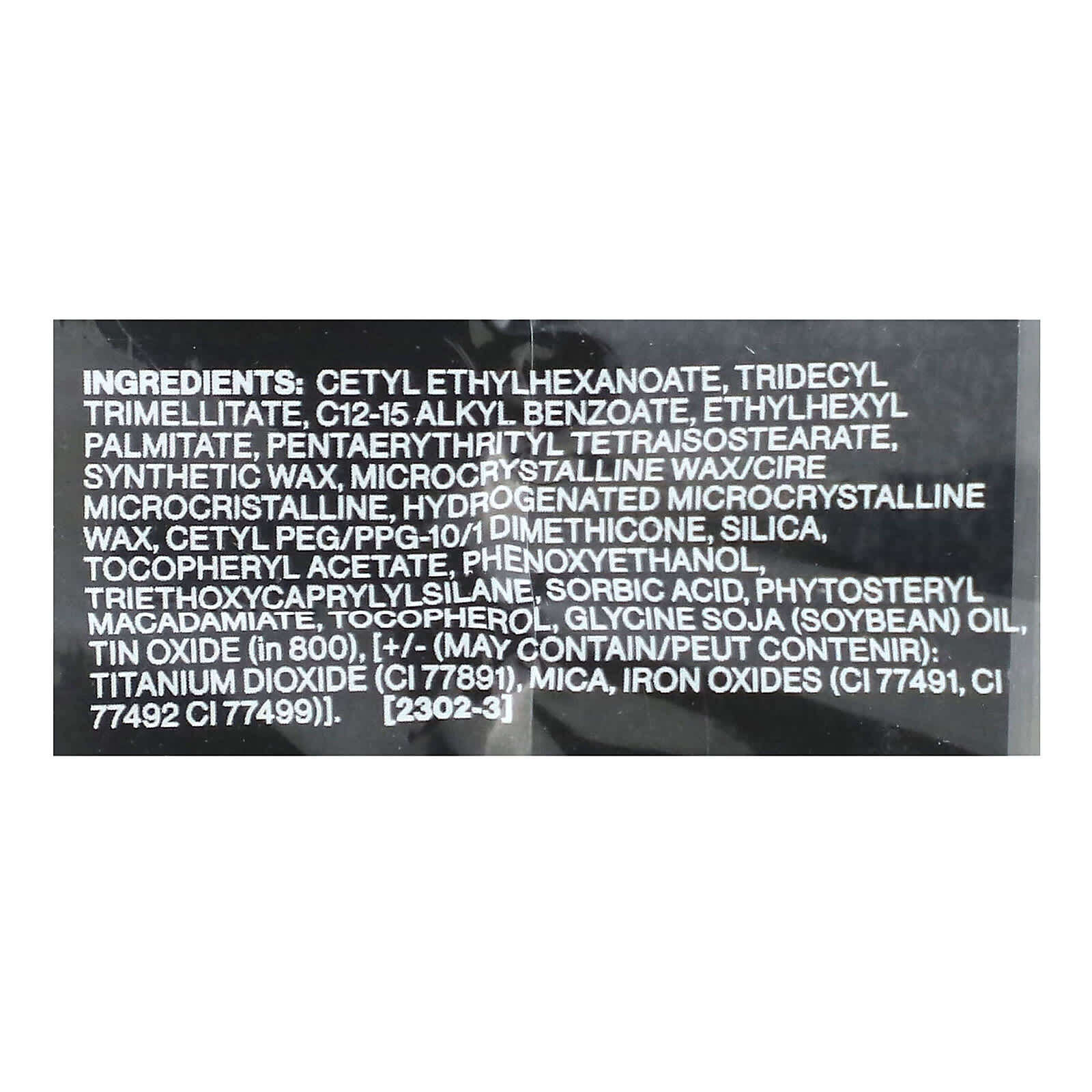 Цетил этилгексаноат, тридецил тримеллитат, c12-15 алкил бензоат, этилгексил пальмитат, пентаэритритил тетраизостеарат, синтетический воск, микрокристаллический воск/микрокристаллический. гидрогенизированный микрокристаллический воск, цетил ПЭГ/ППГ-10/1 диметикон, диоксид кремния, токоферилацетат, феноксиэтанол, триэтоксикаприлилсилан, сорбиновая кислота, фитостерил макадамиат, токоферол, соевое масло (Glycine soja), оксид олова (в 800), [может содержать: диоксид титана (CI 77891), слюда, оксиды железа (CI 77491, CI 77492 (CI 77499)].