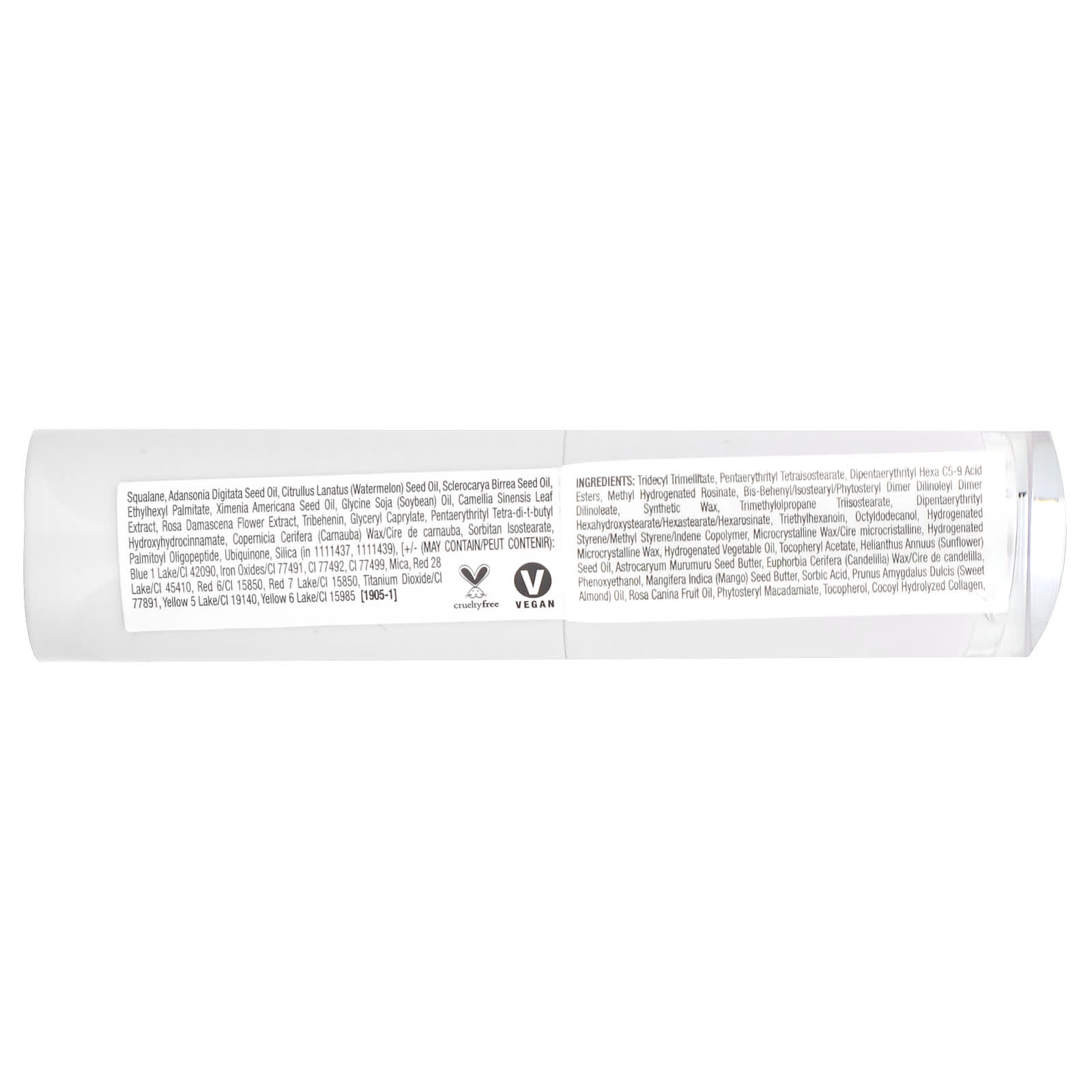 Тридецил тримеллитат, пентаэритритил тетраизостеарат, дипентаэритрил гекса С5-9 кислотные эфиры, метил-гидрогенизированный розинат, бис-бегенил/изостеарил/фитостерил димер дилинолеил димер дилинолеат, синтетический воск, триметилолпропан триизостеарат, дипентаэритритил гексагидроксистеорат/гексастерат/гексаросинат, триэтилгексаноин, октилдодеканол, гидрогенизированный сополимер стирола/метилстирола/индена, микрокристаллический воск/микрокристаллический воск, гидрогенизированный микрокристаллический воск, гидрогенизированное растительное масло, токоферилацетат, подсолнечное масло (Helianthus annuus), масло семян мурумуру (Astrocaryum murumuru), канделильский воск (Euphorbia cerifera), феноксиэтанол, масло косточек манго (Mangifera indica), сорбиновая кислота, масло сладкого миндаля (Prunus amygdalus dulcis), масло шиповника (Rosa canina), фитостерил макадамиат, токоферол, кокоил гидролизованный коллаген, сквалан, масло из семян баобаба (Adansonia digitata), масло из семян арбуза (Citrullus lanatus), масло семян марулы (Sclerocarya birrea), этилгексил пальмитат, масло из семян ксимении американской (Ximenia americana), соевое масло (Glycine soja), экстракт листьев зеленого чая (Camellia sinensis), экстракт цветков дамасской розы (Rosa damascena), трибехенин, глицерил каприлат, пентаэритритил тетра-ди-трет-бутил гидроксигидроциннамат, карнаубский воск (Сopernicia cerifera), сорбитан изостеарат, пальмитоил олигопептид, убихинон, диоксид кремния (в оттенках 1111437, 1111439), [может содержать: краситель синий 1 лак (CI 42090), оксиды железа (CI 77491, CI 77492, CI 77499), слюду, краситель красный 28 лак (CI 45410), краситель красный 6 (CI 15850), краситель красный 7 лак (CI 15850), диоксид титана (CI 77891), краситель желтый 5 лак (CI 19140), краситель желтый 6 лак (CI 15985).