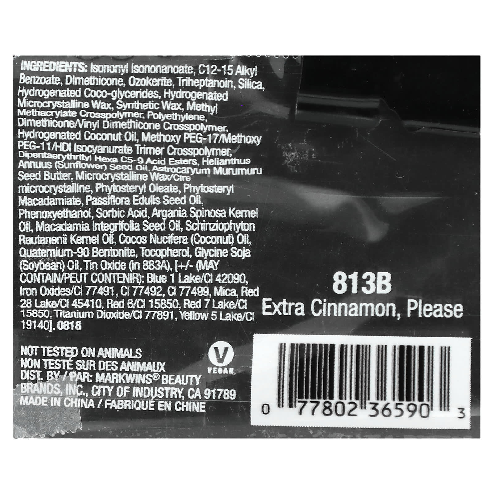 Изононил изононаноат, c12-15 алкил бензоат, диметикон, озокерит, тригептаноин, диоксид кремния, гидрогенизированные кокоглицериды, гидрогенизированный микрокристаллический воск, синтетический воск, метил метакрилат кроссполимер, полиэтилен, диметикон/винил диметикон кроссполимер, гидрогенизированное кокосовое масло, метокси ПЭГ-17/метокси ПЭГ-11/гександиизоцианат изоцианурат/тример кроссполимер, дипентаэритрил гекса С5-9 кислотные эфиры, подсолнечное масло (Helianthus annuus), масло семян мурумуру (Astrocaryum murumuru), микрокристаллический воск (Cera microcristallina), фитостерил олеат, фитостерил макадамиат, феноксиэтанол, масло из семян маракуйи (Passiflora edulis), сорбиновая кислота, аргановое масло (Argania spinosa), масло макадамии (Macadamia integrifolia), масло монгонго (Schinziophyton rautanenii), кокосовое масло (Cocos nucifera), кватерниум-90 бентонит, токоферол, соевое масло (Glycine soja), оксид олова (в 883a), [может содержать: краситель синий 1 лак (CI 42090), оксиды железа (CI 77491), CI 77492, CI 77499), слюду, краситель красный 28 лак (CI 45410), краситель красный 6 (CI 15850), краситель красный 7 лак (CI 15850), диоксид титана (CI 77891), краситель желтый 5 лак (CI 191401).