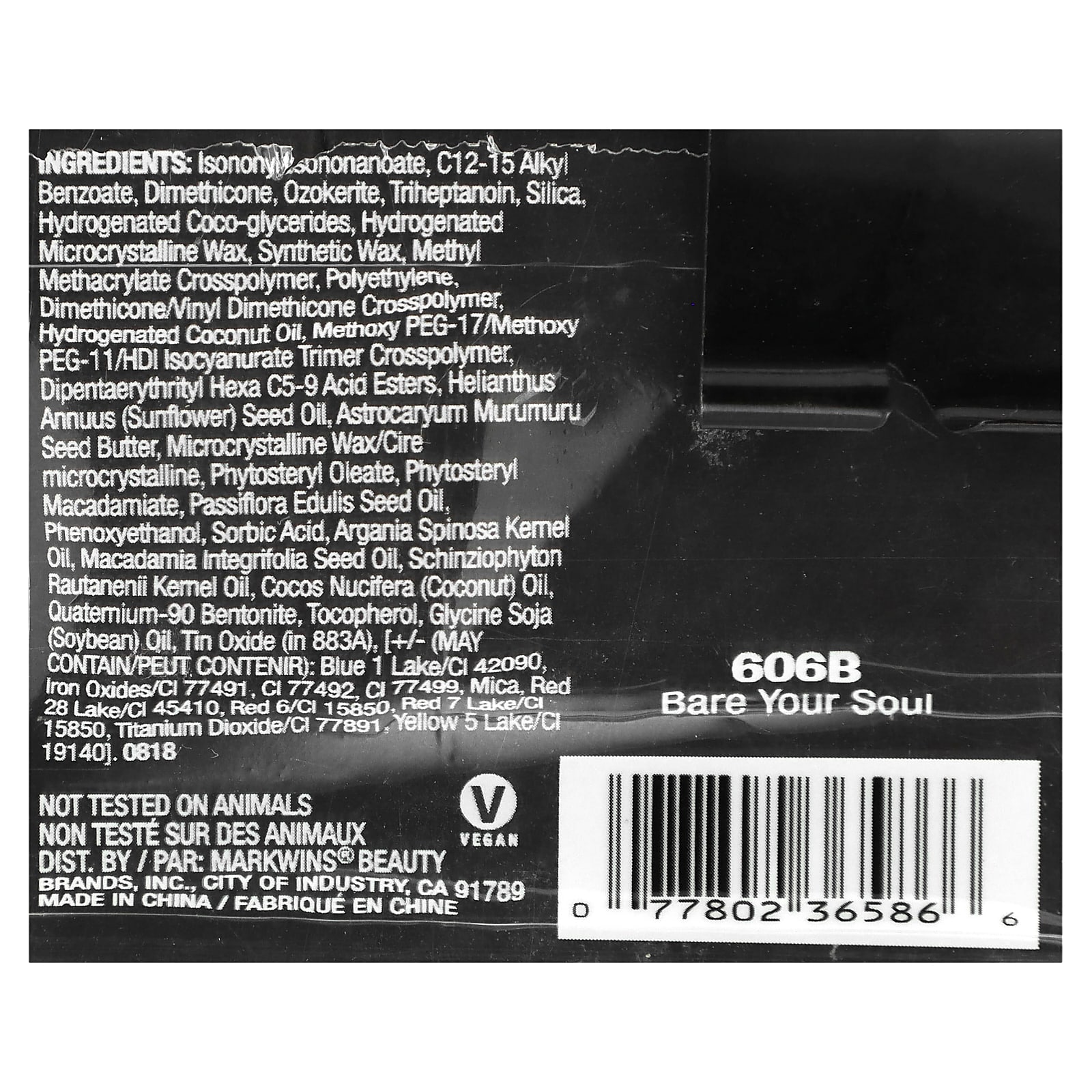 изононил/изононаноат, c12-15 алкил бензоат, диметикон, озокерит, тригептаноин, диоксид кремния, гидрогенизированные кокоглицериды, гидрогенизированный микрокристаллический воск, синтетический воск, метил метакрилат кроссполимер, полиэтилен, диметикон/винил диметикон кроссполимер, гидрогенизированное кокосовое масло, метокси ПЭГ-17/метокси ПЭГ-11/гександиизоцианат изоцианурат/тример кроссполимер, дипентаэритрил гекса С5-9 кислотные эфиры, подсолнечное масло (Helianthus annuus), масло семян мурумуру (Astrocaryum murumuru), микрокристаллический воск (Cera microcristallina), фитостерил олеат, фитостерил макадамиат, масло из семян маракуйи (Passiflora edulis). феноксиэтанол, сорбиновая кислота, аргановое масло (Argania spinosa), масло макадамии (Macadamia integrifolia), масло монгонго (Schinziophyton rautanenii), кокосовое масло (Cocos nucifera), кватерниум-90 бентонит, токоферол, соевое масло (Glycine soja), оксид олова (в 883a), [может содержать краситель синий 1 лак/c| 42090, оксиды железа (CI 77491, CI 77492, CI 77499), слюда, краситель красный 28 лак (CI 45410), краситель красный 6 (CI 15850), краситель красный 7 лак (CI 15850), диоксид титана (CI 77891), краситель желтый 5 лак (CI 19140)].