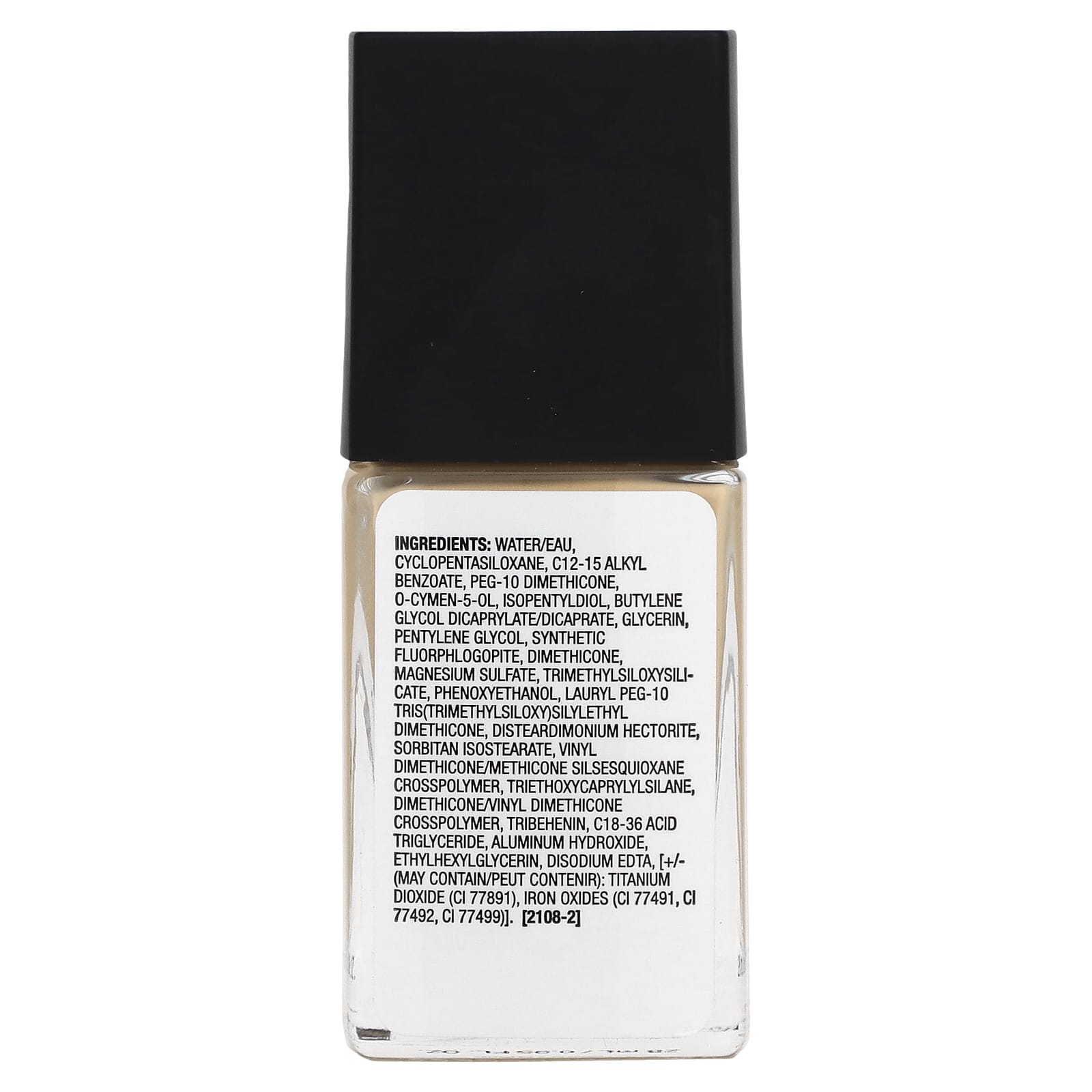 Вода, циклопентасилоксан, c12-15 алкил бензоат, ПЭГ-10 диметикон, о-цимен-5-ол, изопентилдиол, бутиленгликоль дикаприлат/дикапрат, глицерин, пентилен гликоль, синтетический фторфлогопит, диметикон, сульфат магния, триметилсилоксисиликат, феноксиэтанол, лаурил ПЭГ-10 трис (триметилсилокси) силилэтил диметикон, дистеардимония гекторит, сорбитан изостеарат, винил диметикон/метикон силсесквиоксан кроссполимер, триэтоксикаприлилсилан, диметикон/винил диметикон кроссполимер, трибехенин, c18-36 триглицериды кислот, гидроксид алюминия, этилгексилглицерин, двунатриевая ЭДТК, [+/- (может содержать) диоксид титана (CI 77891), оксиды железа (CI 77491, CI 77492, ci 77499)].