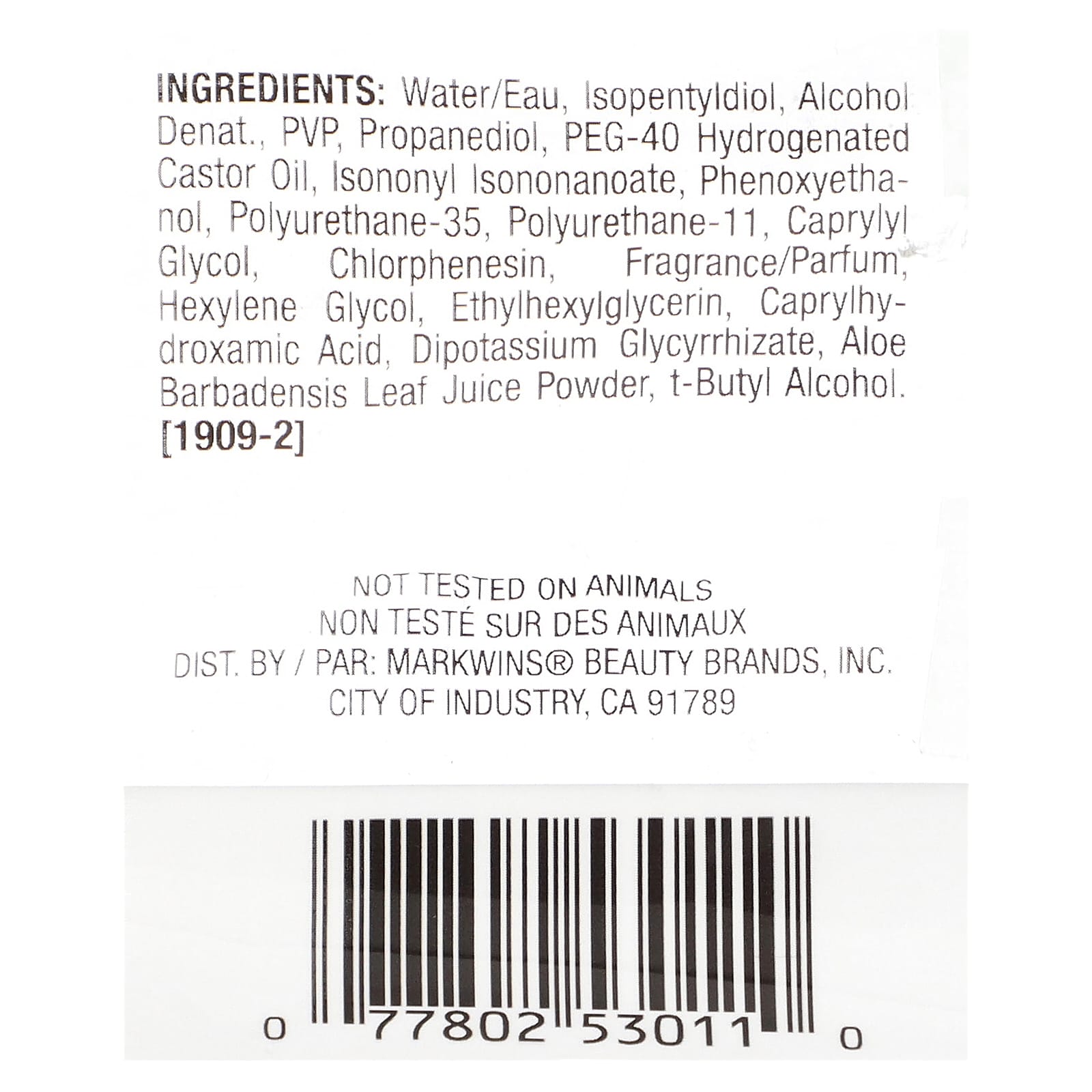 Вода (Eau), изопентилдиол, денатурированный спирт, ПВП, пропандиол, ПЭГ-40 гидрогенизированное касторовое масло, изононил изононаноат, феноксиэтанол, полиуретан-35, полиуретан-11, каприлилгликоль, хлорфенезин, отдушка (парфюмерная композиция), гексиленгликоль, этилгексилглицерин, каприлгидроксаминовая кислота, дикалия глицирризат, порошок из сока листьев алоэ вера (Aloe barbadensis), трет-бутиловый спирт.