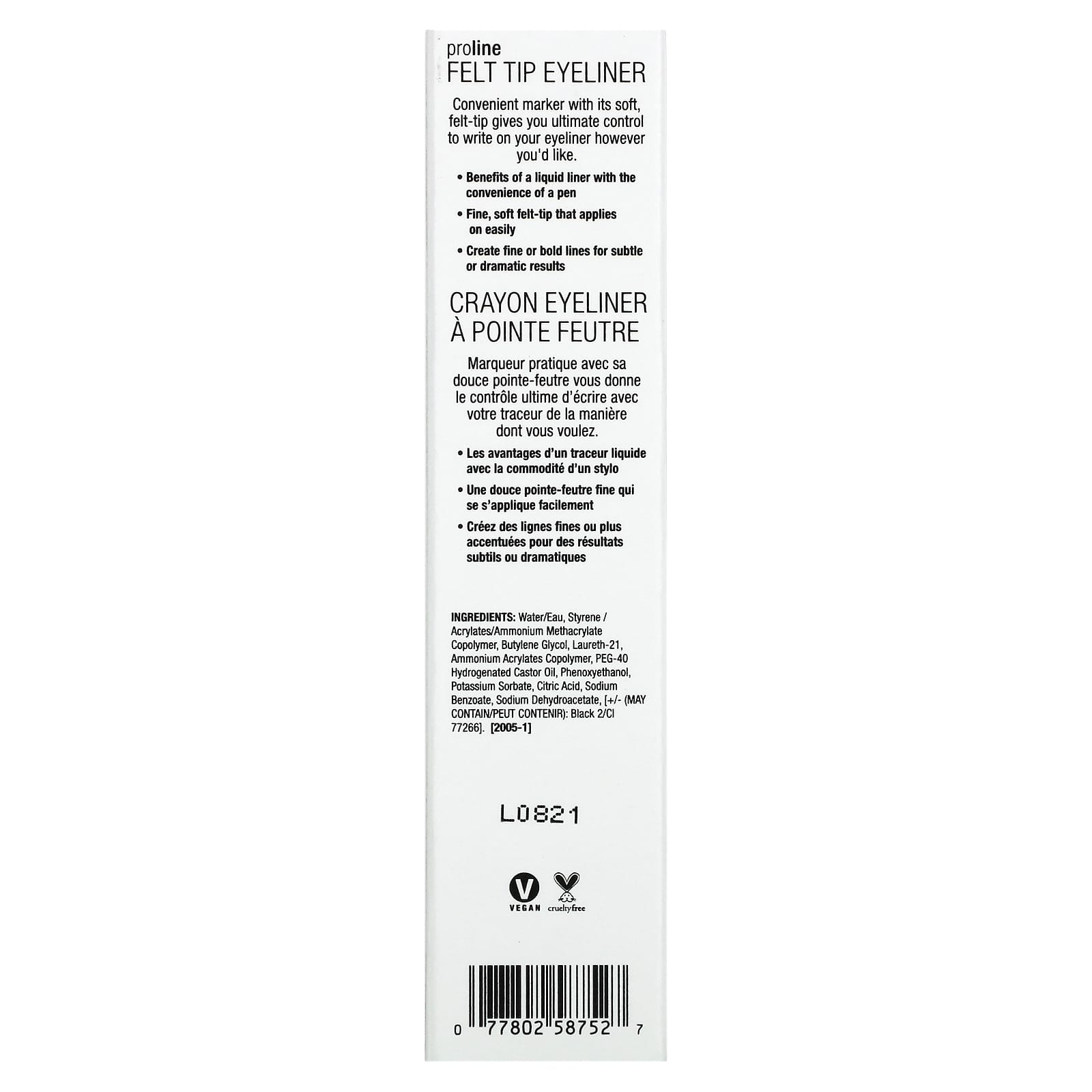 Вода (eau), сополимер акрилатов, бутиленгликоль, лаурет-21, глицерин, пропиленгликоль, пропандиол, ПЭГ-40 гидрогенизированное касторовое масло, полисорбат 20, феноксиэтанол, дегидроацетат натрия, каприлилгликоль, каприлгидроксаминовая кислота, дикалия глицирризат, гексиленгликоль, этилгексилглицерин, тринатриевая ЭДТК, краситель черный 2 (CI 77266).
