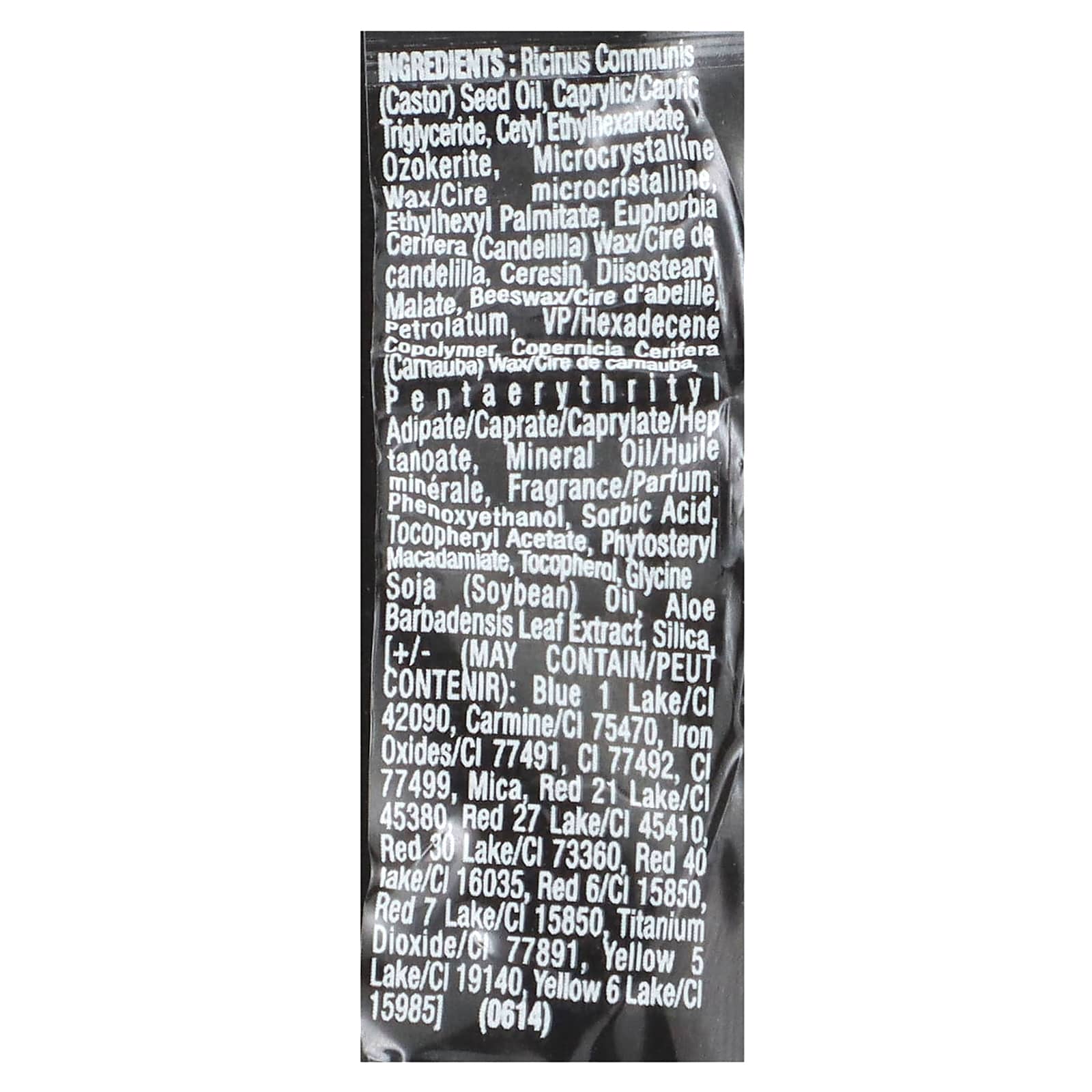 Касторовое масло (Ricinus communis), каприловый/каприновый триглицерид, цетилэтилгексаноат, озокерит, микрокристаллический воск, этилгексил пальмитат, канделильский воск (Euphorbia cerifera), церезин, диизостеарил малат, пчелиный воск, вазелин, ВП/гексадецен сополимер, карнаубский воск (Copernicia cerifera), пентаэритритил адипат/капрат/каприлат/гептаноат, минерального масла, отдушка, феноксиэтанол, сорбиновая кислота, токоферилацетат, фитостерил макадамиат, токоферол, соевое масло (Glycine soja), экстракт листьев алоэ вера (Aloe barbadensis), диоксид кремния, [может содержать краситель синий 1 лак (CI 42090), кармин (CI 75470), оксиды железа (CI 77491, CI 77492, 77499, слюда, краситель красный 21 лак/CI) 45380, краситель красный 27 лак (CI 45410), краситель красный 30 лак/CI 73360, краситель красный 40 лак (CI 16035), краситель красный 6 (CI 15850), краситель красный 7 лак (CI 15850), диоксид титана (CI 77891), краситель желтый 5 лак (CI 19140), краситель желтый 6 лак (CI 15985)].