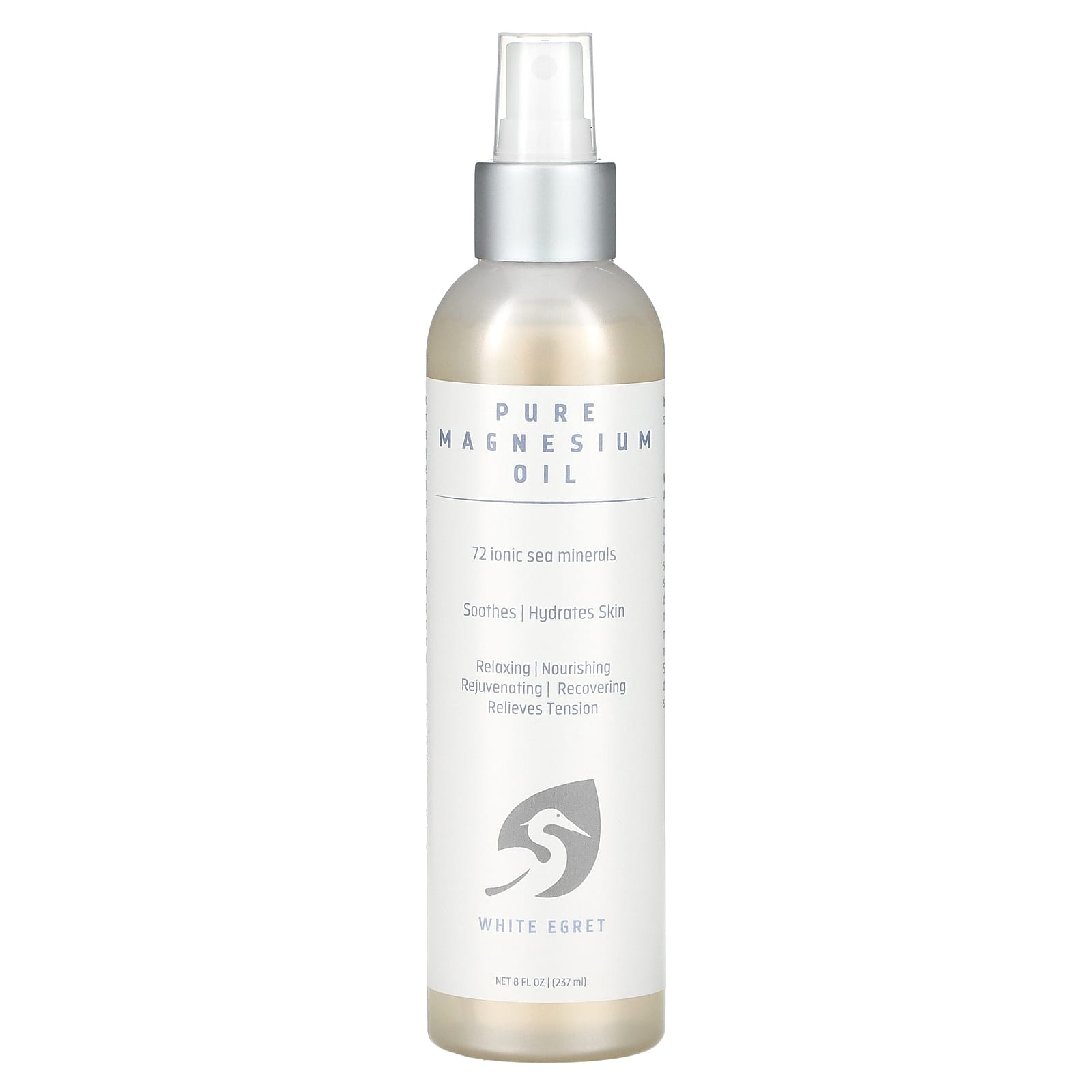Our Magnesium Oil is harvested through Solar Evaporation from Utah's ancient inland sea, the Great Salt Lake, which is naturally high in Ionic Magnesium Chloride. White Egret Pure Magnesium Oil leaves less residue and contains no heavy metals. There is approximately 12,000 mg of Magnesium Chloride contained in this one bottle. 20 sprays will deliver approximately 250 mg of elemental Magnesium to help beautify the skin. This product also includes 72 ionic sea minerals in a completely natural, balanced solution.