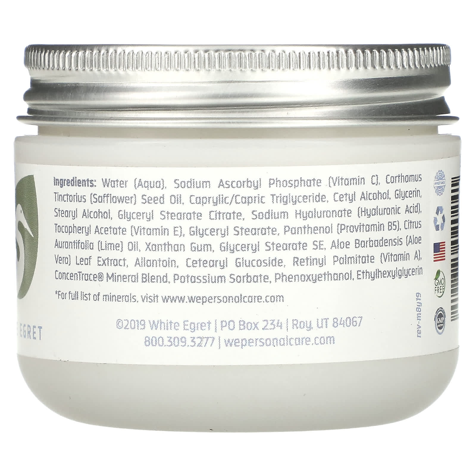 Вода, аскорбил фосфат натрия (витамин C), масло семян сафлора (Carthamus tinctorius), каприловый/каприновый триглицерид, цетиловый спирт,, глицерин, стеариловый спирт, глицерил стеарат цитрат, гиалуронат натрия (гиалуроновая кислота), токоферилацетат (витамин E), глицерил стеарат, пантенол (провитамин B5), масло лайма (Citrus aurantifolia), ксантановая камедь, глицерил стеарат эмульгирующий, экстракт листьев алоэ вера (Aloe vera), аллантоин, цетеариловый глюкозид, ретинилпальмитат (витамин A), смесь микроэлементов ConcenTrace, сорбат калия, феноксиэтанол, этилгексилглицерин.