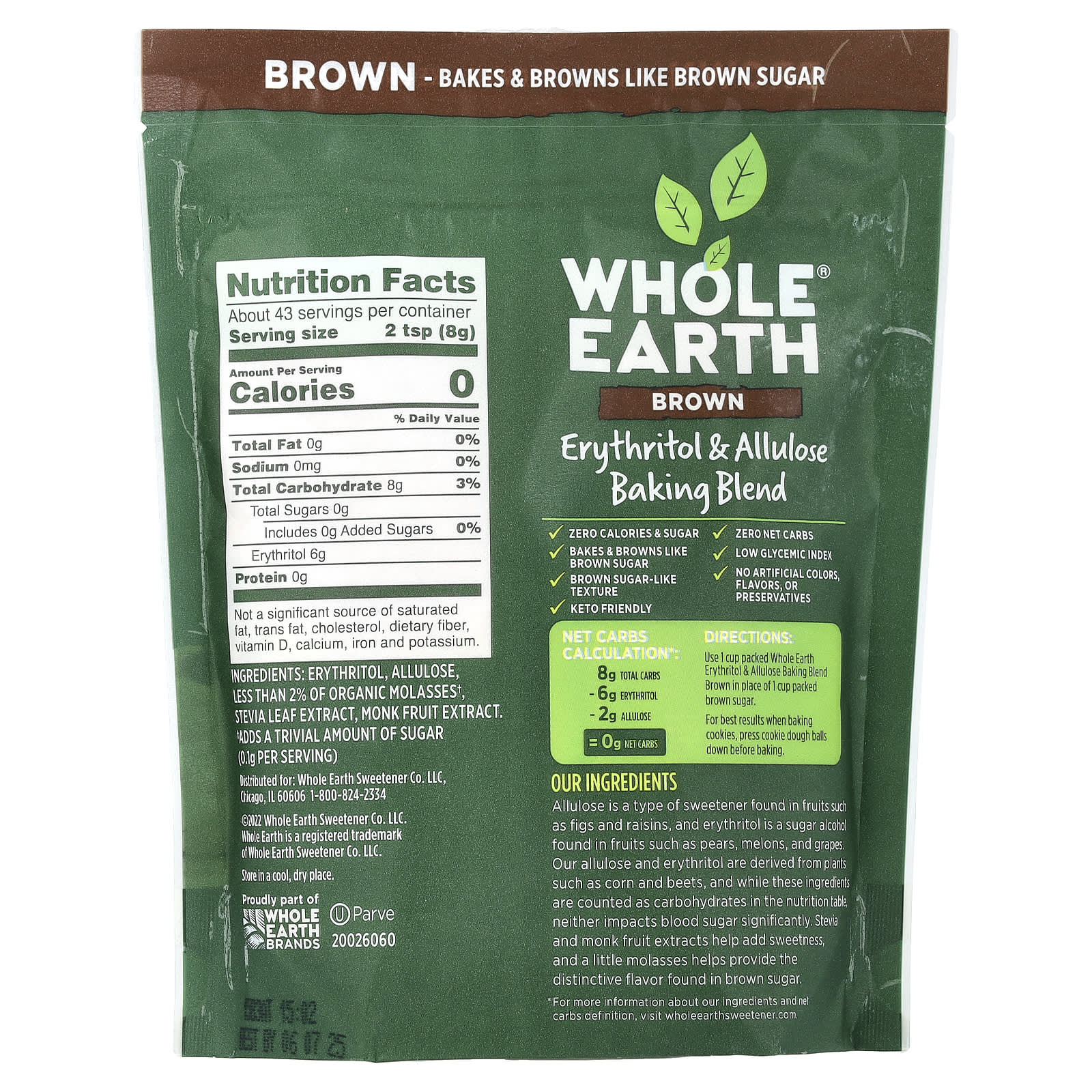 Аллюлоза — это подсластитель, который содержится в таких фруктах, как инжир и изюм, а эритритол — это сахарный спирт, который содержится в грушах, дынях и винограде. Наши аллюлоза и эритритол получены из кукурузы, и, хотя в таблице пищевой ценности оба ингредиента считаются углеводами, ни один из них не влияет существенным образом на уровень сахара в крови. Экстракты стевии и архата добавляют сладости, а немного патоки помогает придать характерный вкус, свойственный коричневому сахару.