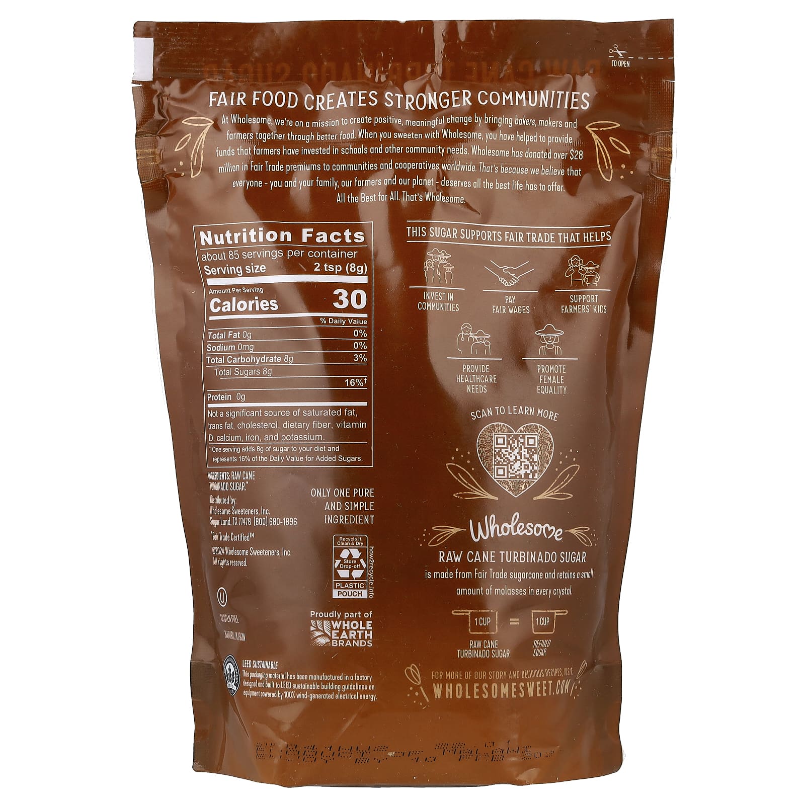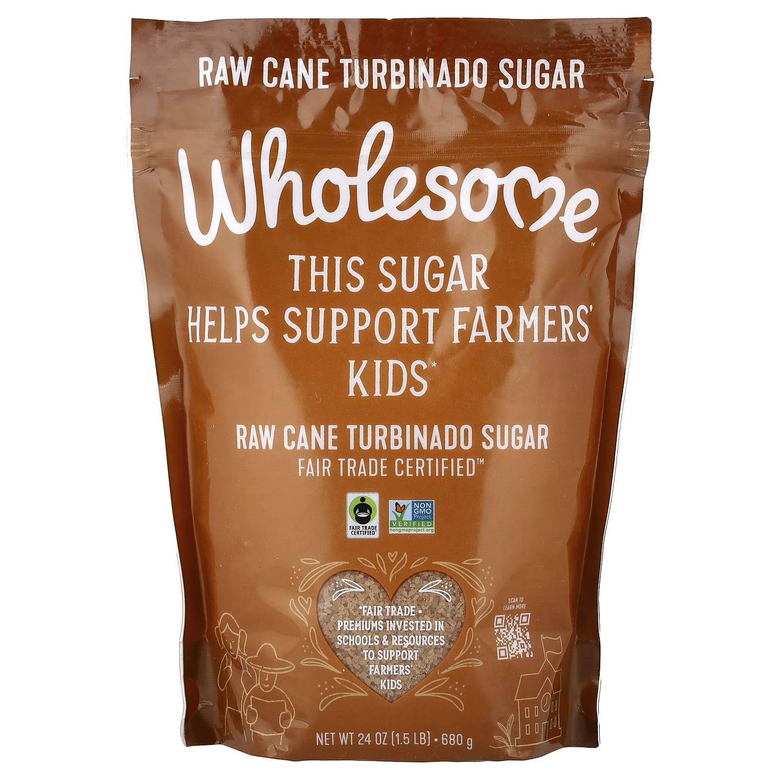 Необработанный тростниковый сахар турбинадо производится из сахарного тростника, приобретенного на основе принципов справедливой торговли, и содержит небольшое количество патоки в каждом кристалле.