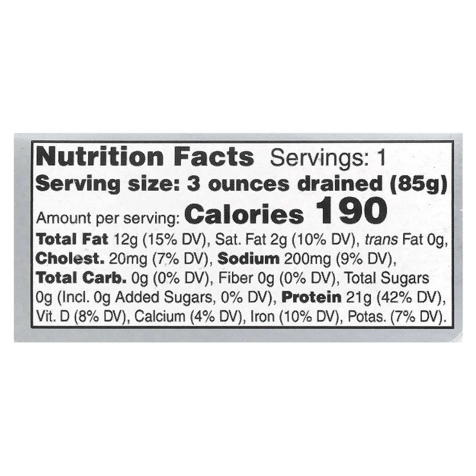 | Размер порции: 85 г (3 унции) | ||