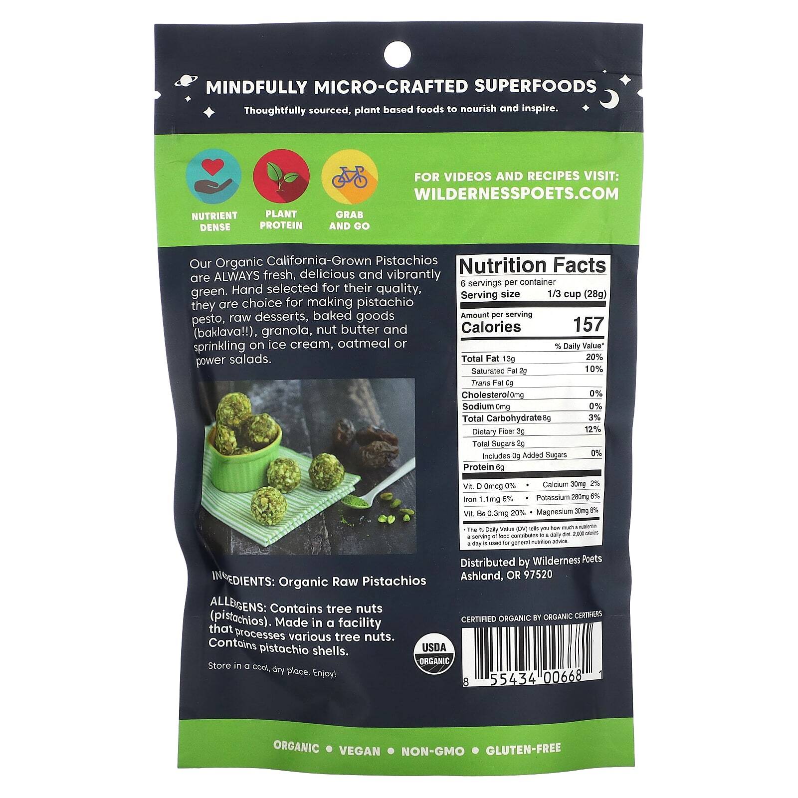 Наши органические фисташки, выращенные в Калифорнии, ВСЕГДА свежие, вкусные и ярко-зеленые. Отобранные вручную по качеству, они используются для приготовления фисташкового песто, сырых десертов, выпечки (пахлавы !!), мюсли, орехового масла, а также для посыпки мороженого, овсянки или салатов.