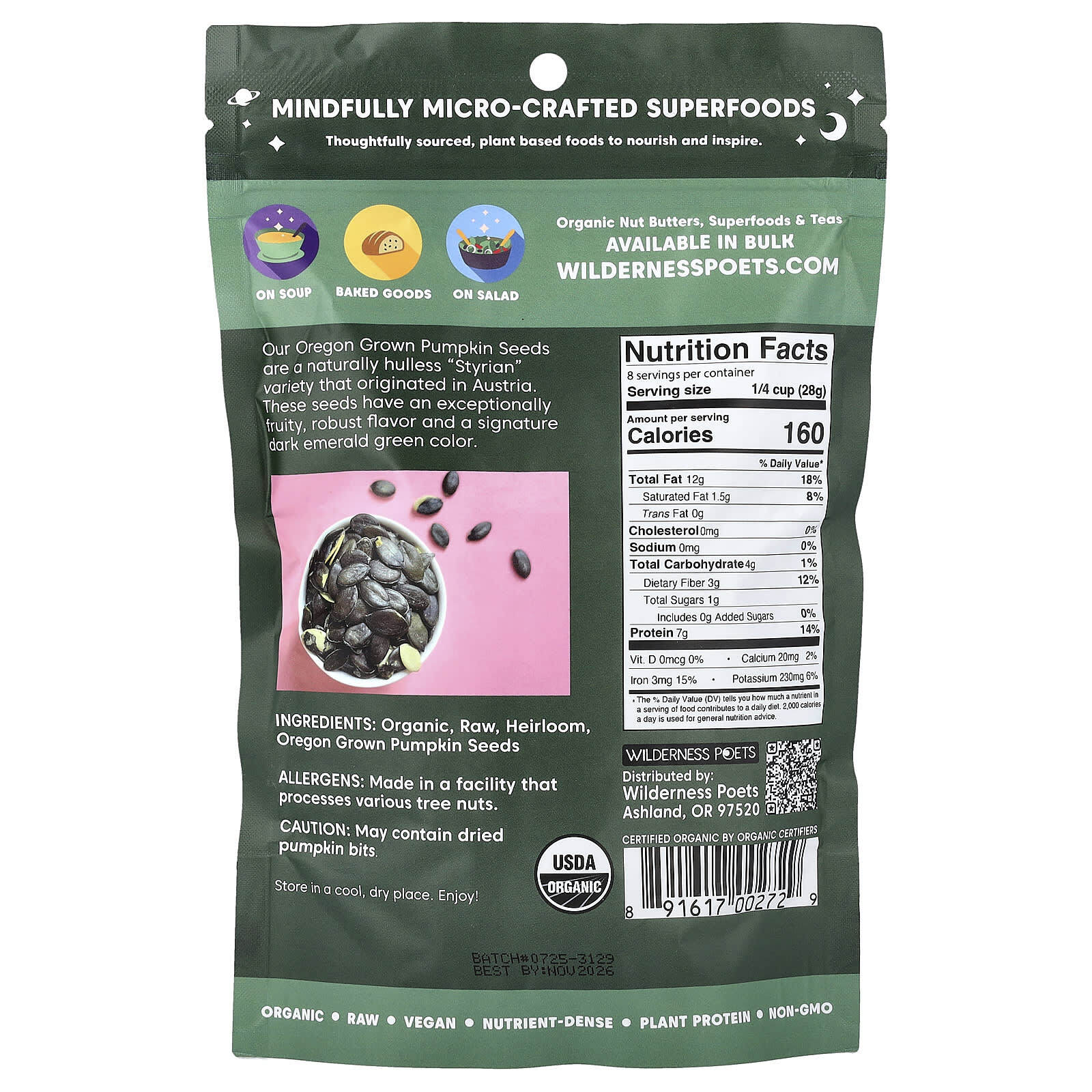 Наши тыквенные семечки, выращенные в Орегоне, представляют собой сорт без оболочки, который вывели в Австрии. Эти семена обладают исключительно насыщенным фруктовым вкусом и характерным темно-изумрудно-зеленым цветом.