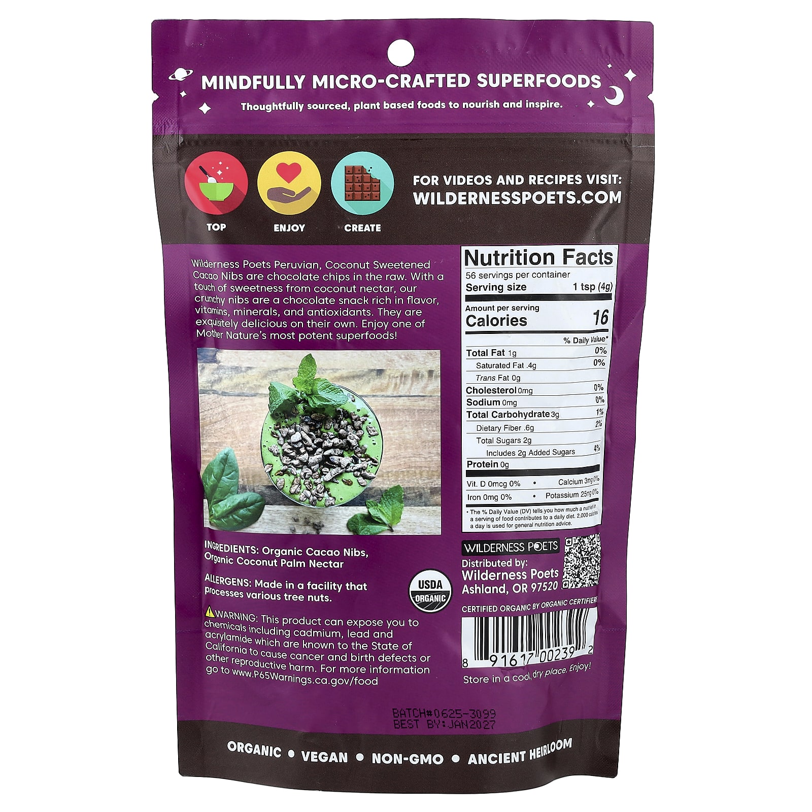 Подслащенные кокосом ядра какао-боба Wilderness Poets из Перу — это шоколадная крошка в необработанном виде. Наши хрустящие ядра с легкой сладостью кокосового нектара — это шоколадный снек с насыщенным вкусом, богатый витаминами, минералами и антиоксидантами. Они восхитительно вкусны сами по себе. Наслаждайтесь одним из самых мощных суперфудов, созданных природой!