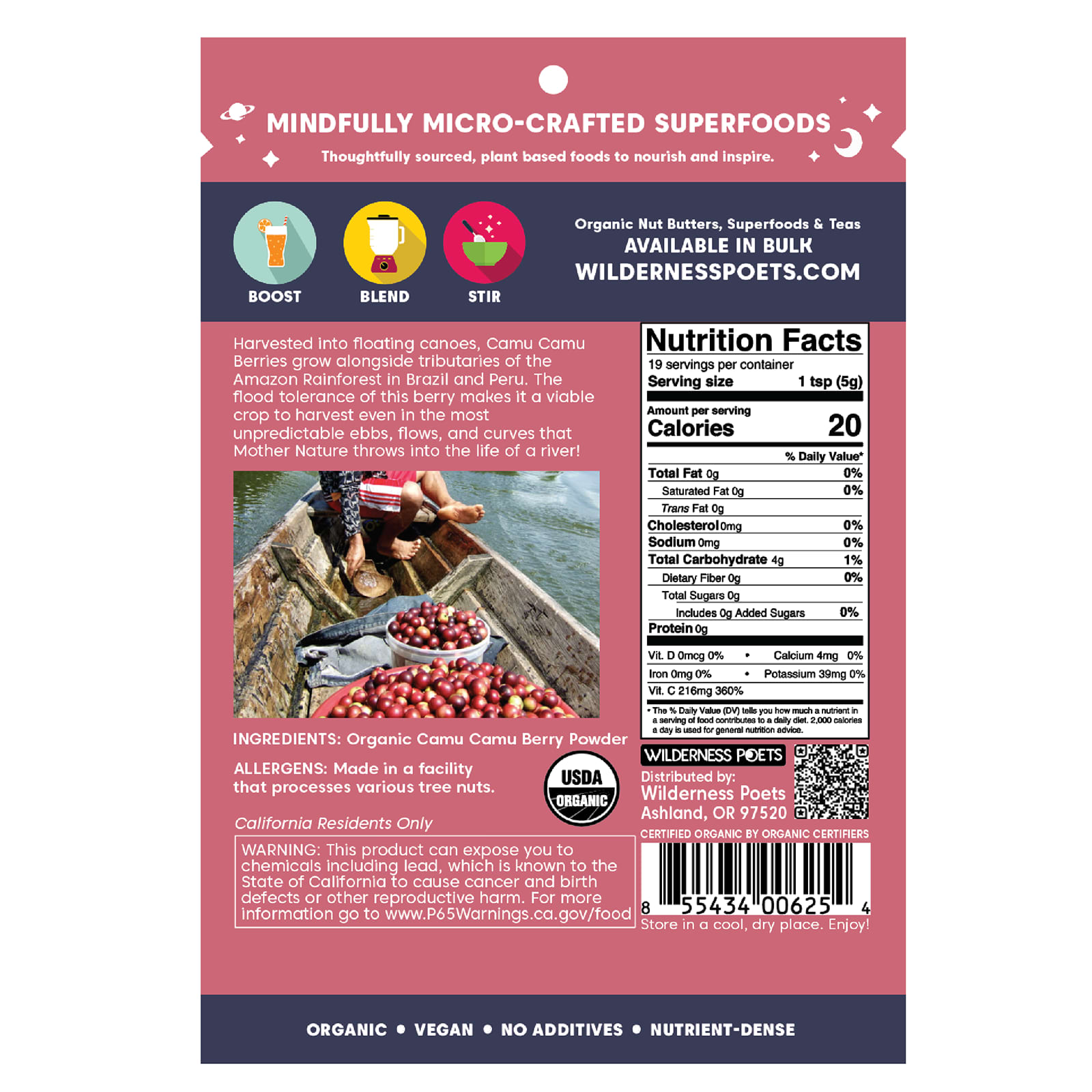 Ягоды каму-каму растут вдоль притоков тропических лесов Амазонки в Бразилии и Перу и собираются на плавучих каноэ. Устойчивость этой ягоды к наводнениям делает ее жизнеспособной культурой для сбора даже в самые непредсказуемые приливы, отливы и повороты, которые мать-природа бросает в жизнь реки!