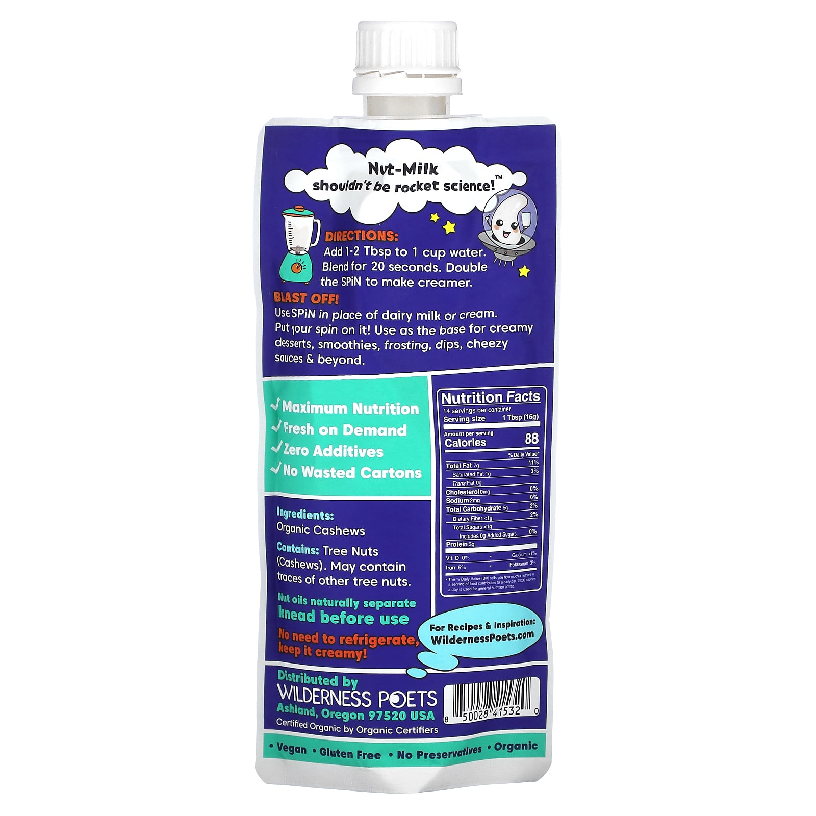 Сделайте свой собственный вкусный крем и молоко из кешью за секунды (без хлопот замачивания, смешивания и процеживания кешью). Просто добавьте воды и взбейте! Добавляйте подсластители и специи, чтобы приготовить сливочные десерты, пенистые латте, кофе со льдом, смузи, дипы, сырные соусы и многое другое. Шелковисто-гладкий, сочный, безграничный потенциал. Это галактика!