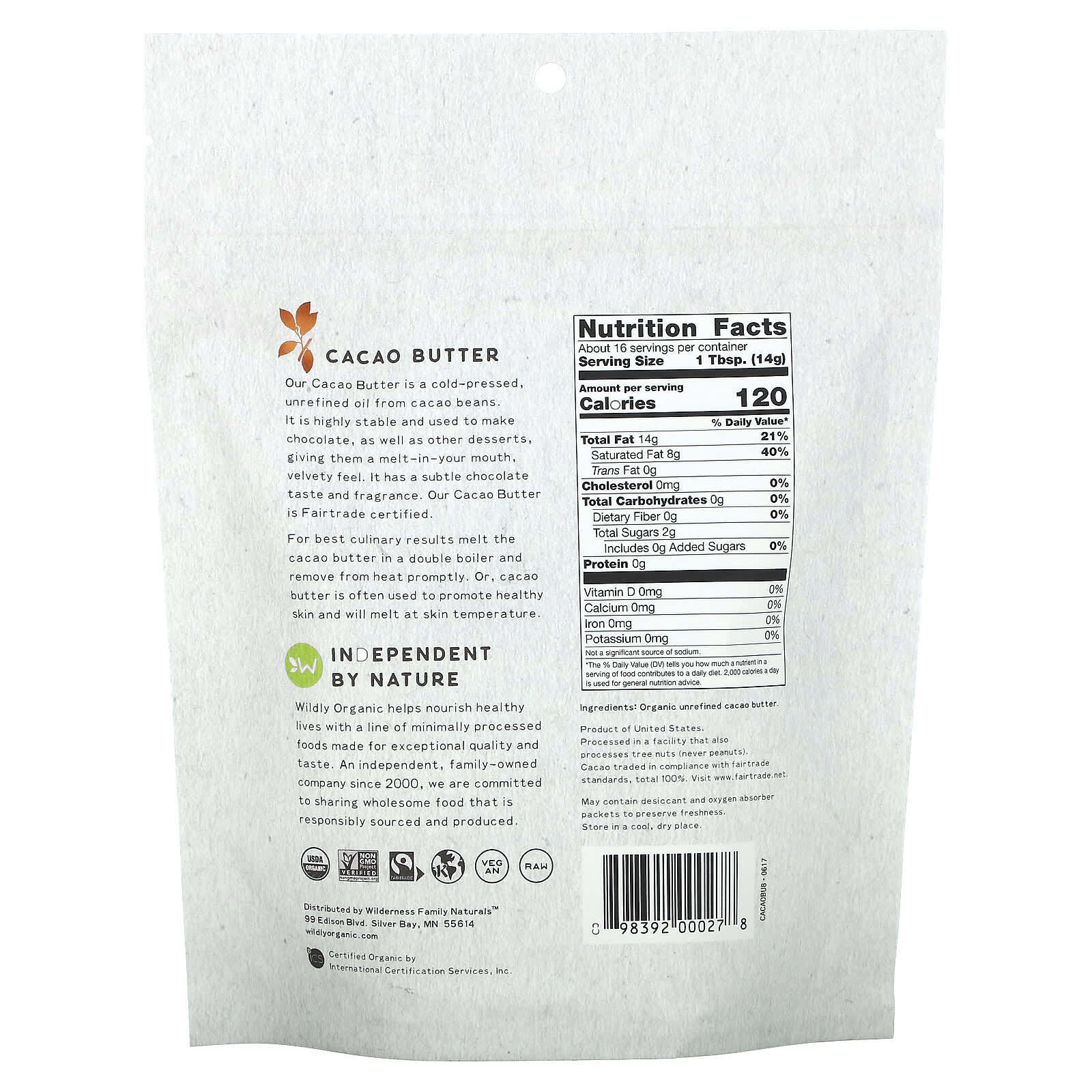 Органическое нерафинированное масло какао.