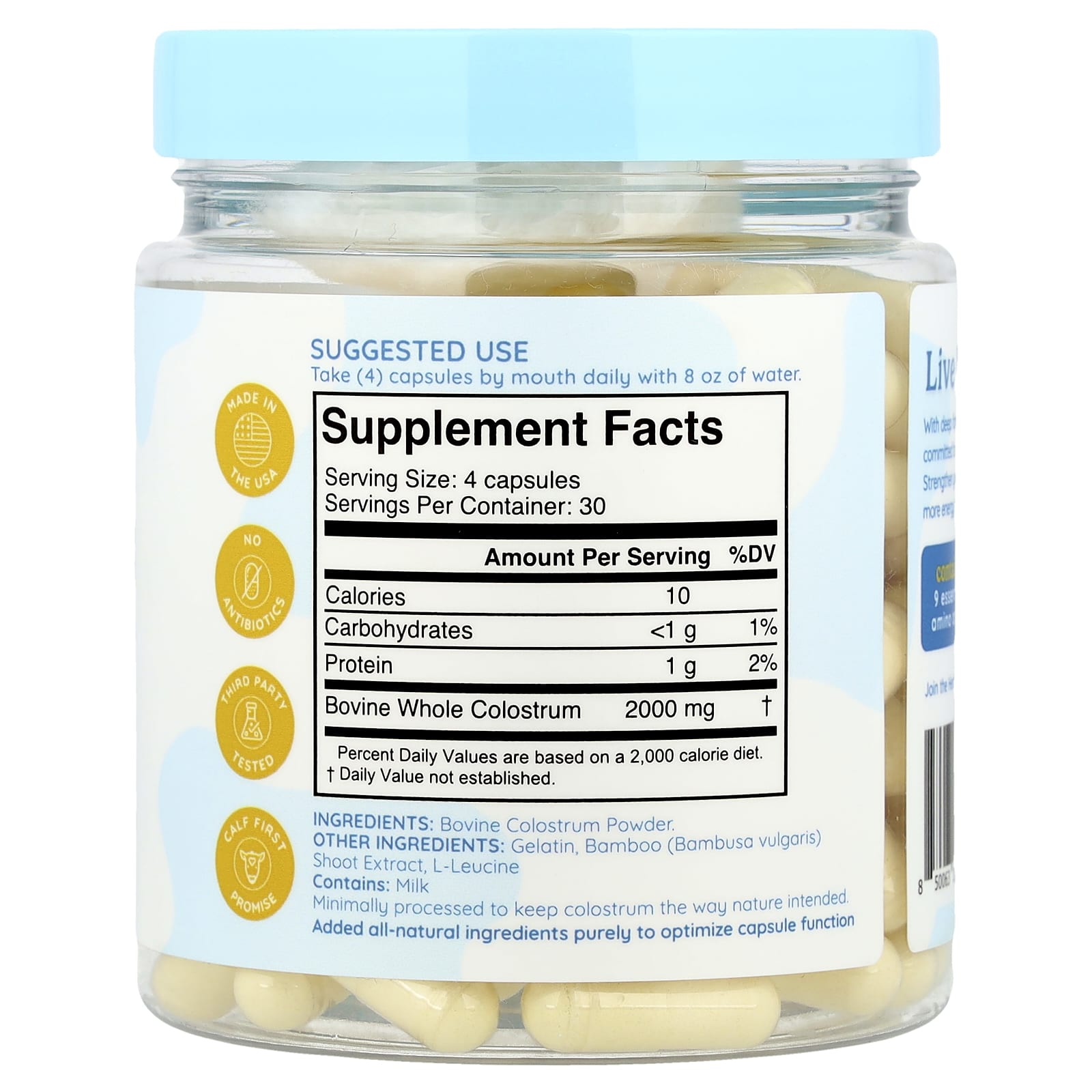 | Цельное молозиво крупного рогатого скота | 2000 мг | † |