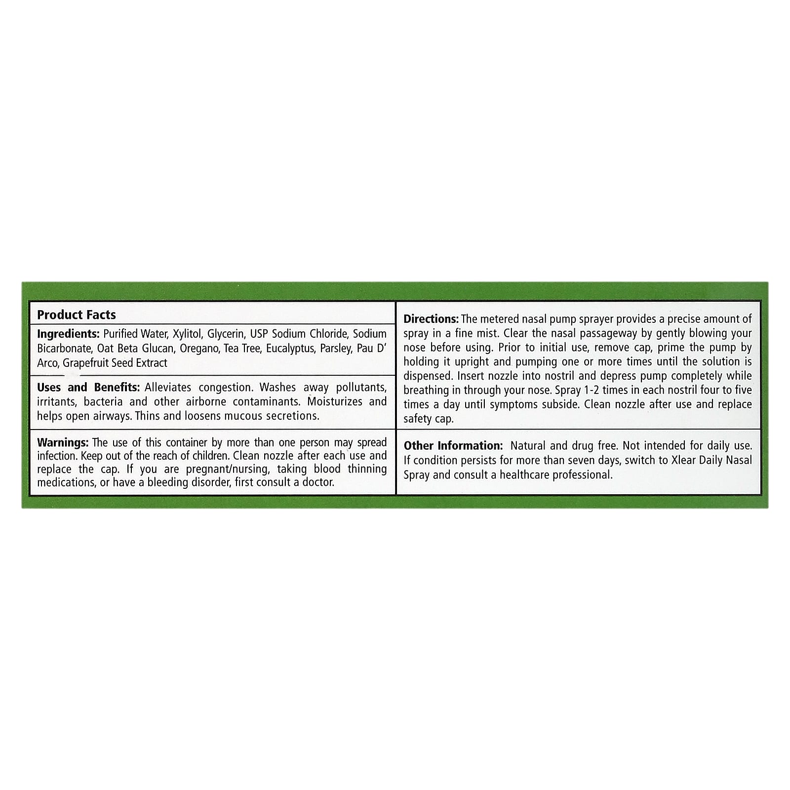 Натуральное немедикаментозное средство. Не предназначен для ежедневного использования. Если состояние сохраняется более семи дней, перейдите на ежедневный назальный спрей Xlear и обратитесь к врачу.