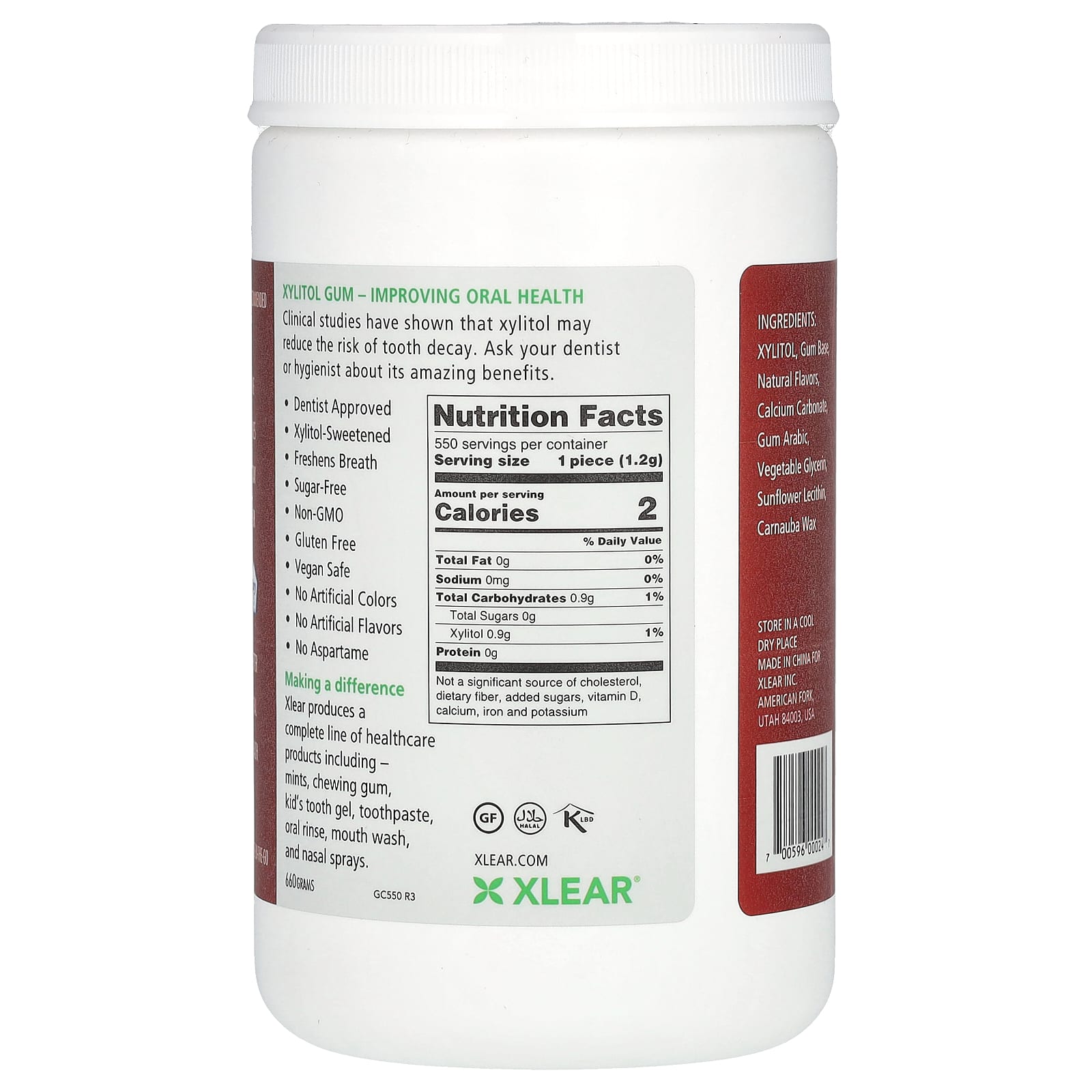 Xlear, Spry, жевательная резинка, натуральная корица, без сахара, 550 шт. (660 г)