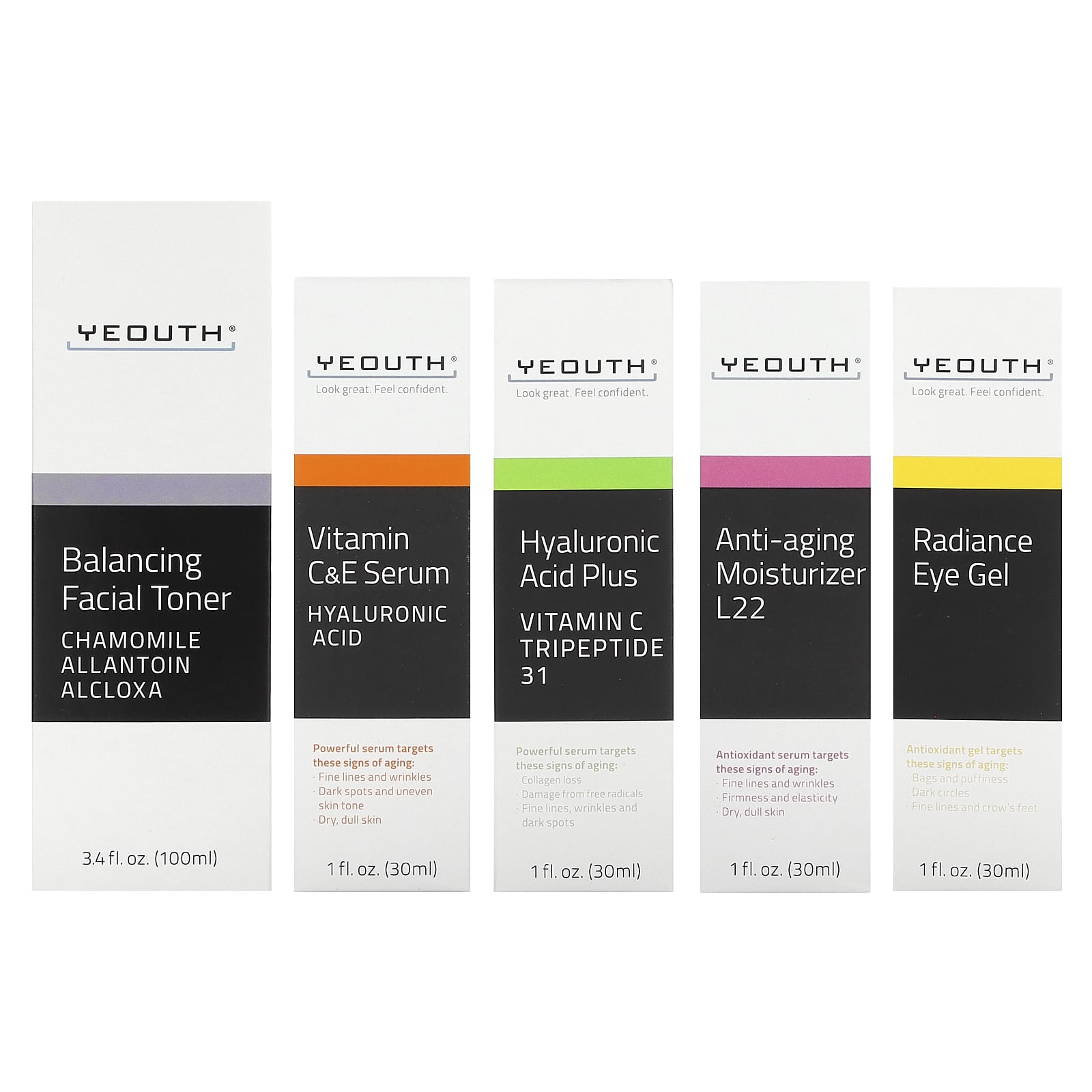 Все продукты Yeouth содержат стабильные, высококачественные, клинически протестированные ингредиенты, которые взаимодействуют друг с другом. Хотя все наши продукты разработаны для улучшения внешнего вида кожи, каждый из них действует по-своему. Совместное использование продуктов YEOUTH увеличивает эффективность и улучшает внешний вид кожи, обеспечивая заметные результаты.