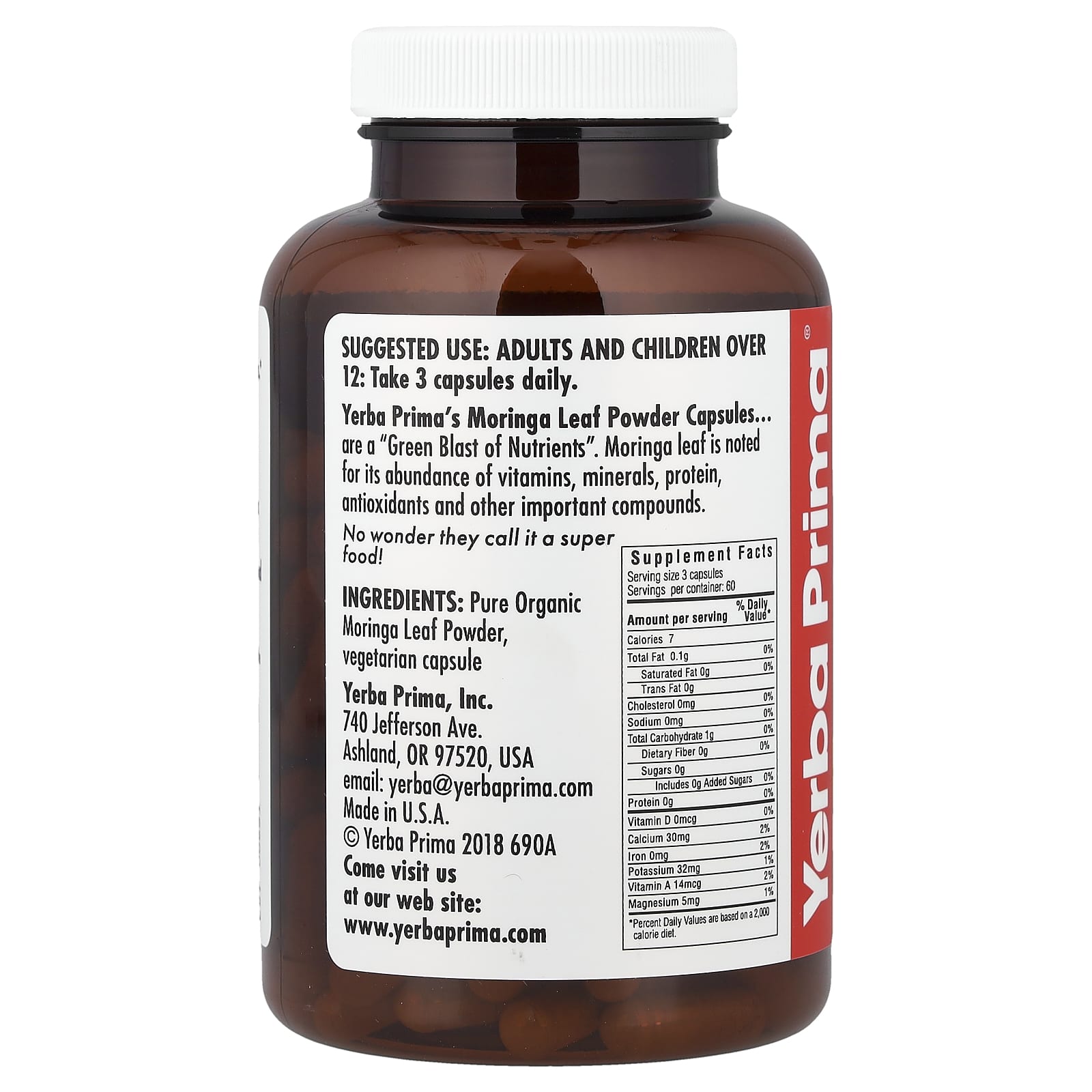 Капсулы с порошком из листьев моринги от Yerba Prima — это «зеленый взрыв питательных веществ». Лист моринги известен обилием витаминов, минералов, белков, антиоксидантов и других важных соединений.