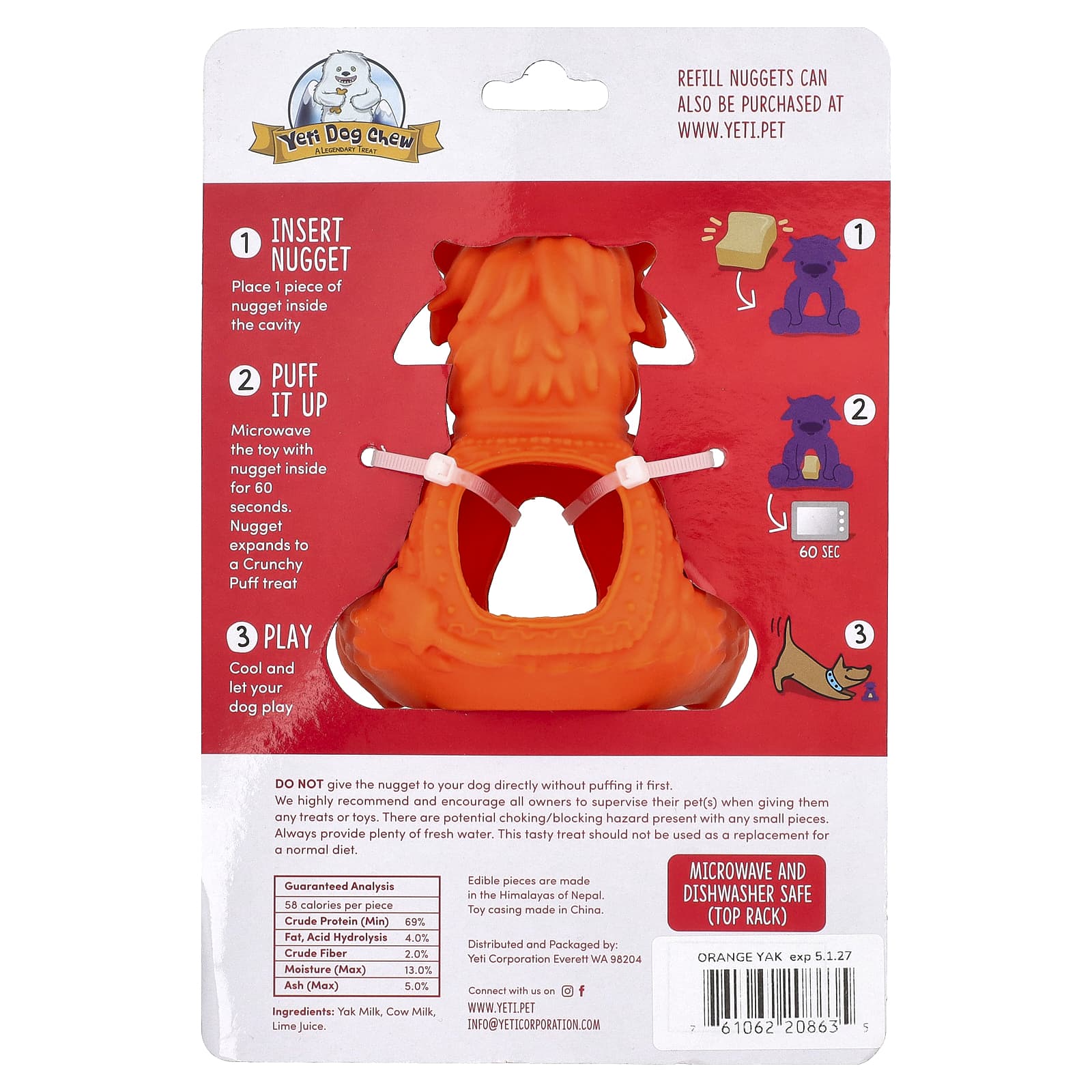 Съедобные кусочки делают в Гималаях Непал. Оболочка игрушки, произведенная в Китае.