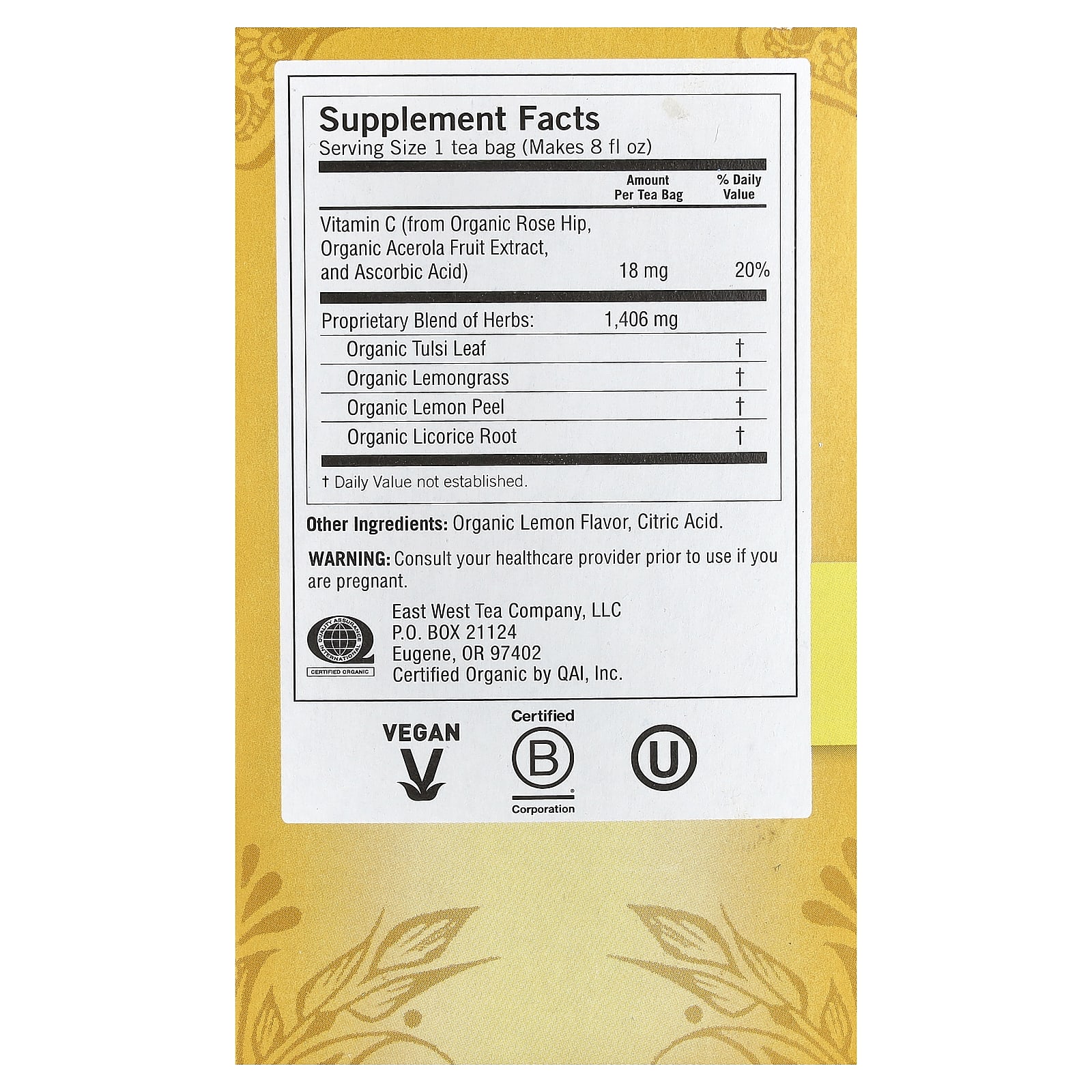 | Размер порции: 1 чайный пакетик [прибл. на 240 мл (8 жидк. унций)] | ||