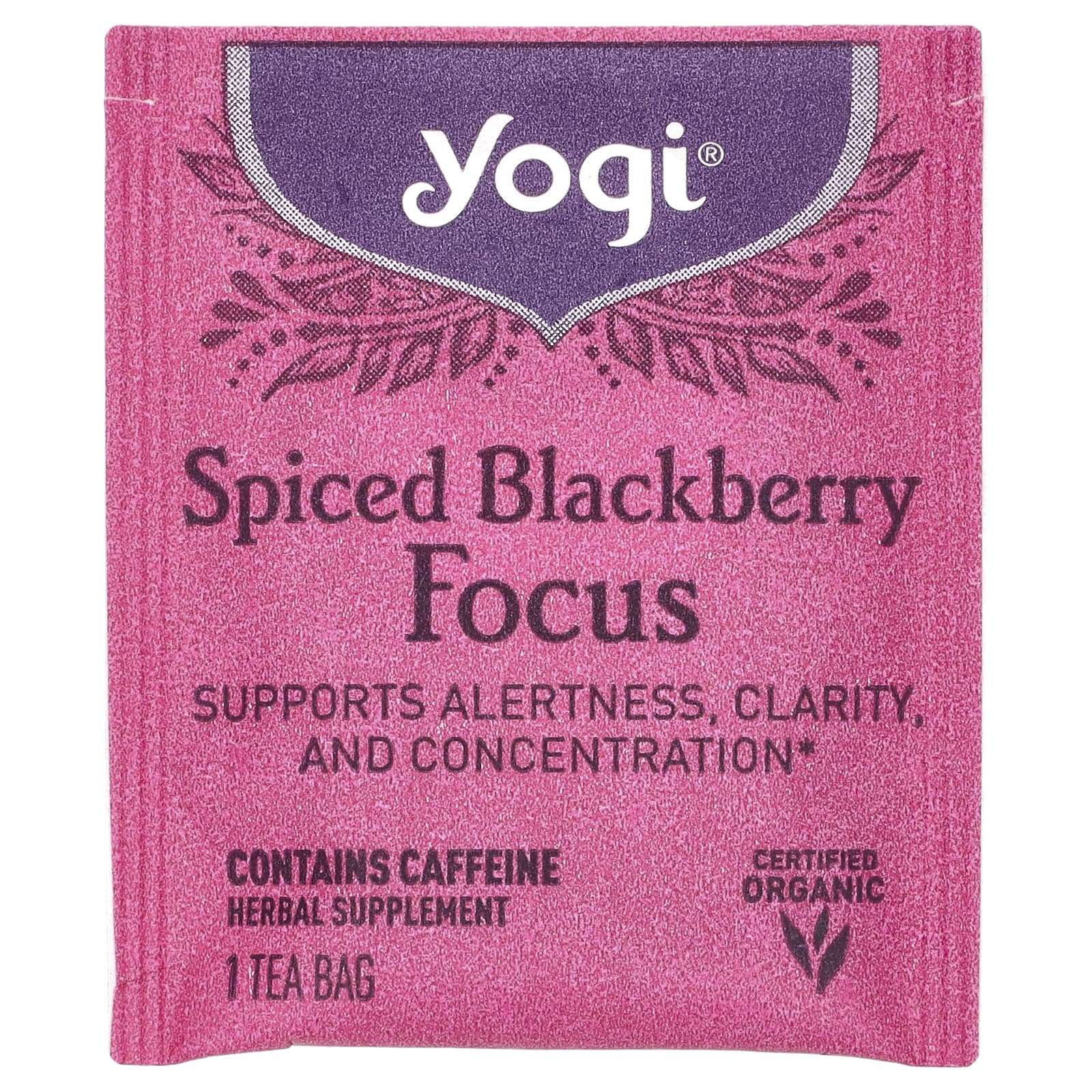 Чай Yogi Spiced Blackberry Focus сочетает в себе бодрящий черный чай с бакопой, ноотропной травой, которая поддерживает ясность ума и концентрацию. Традиционно используемые аюрведические травы, корица и гвоздика мягко согревают и радуют чувства, а ежевика и цветы гибискуса придают напитку яркий фруктовый вкус. Наслаждайтесь Spiced Blackberry Focus, чтобы чувствовать себя бодрым и сосредоточенным.