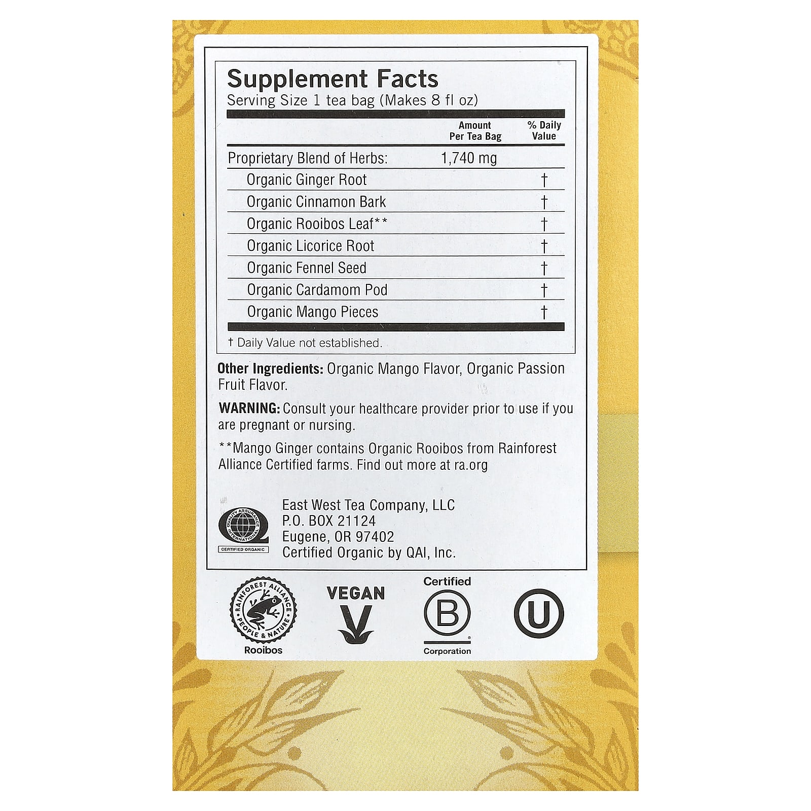 | Размер порции: 1 чайный пакетик [прибл. на 240 мл (8 жидк. унций)] | ||