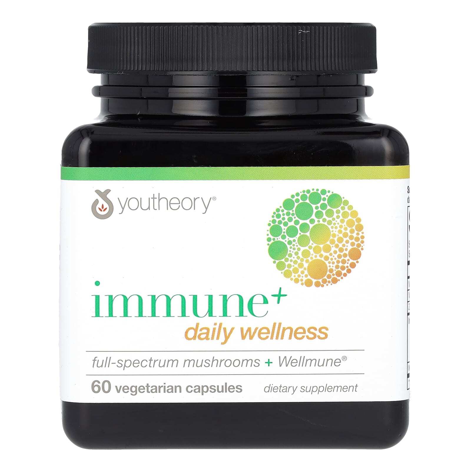 Youtheory® Immune + Daily Wellness использует порошок лекарственных грибов и клинически изученный Wellmune®, чтобы помочь укрепить иммунную реакцию организма.