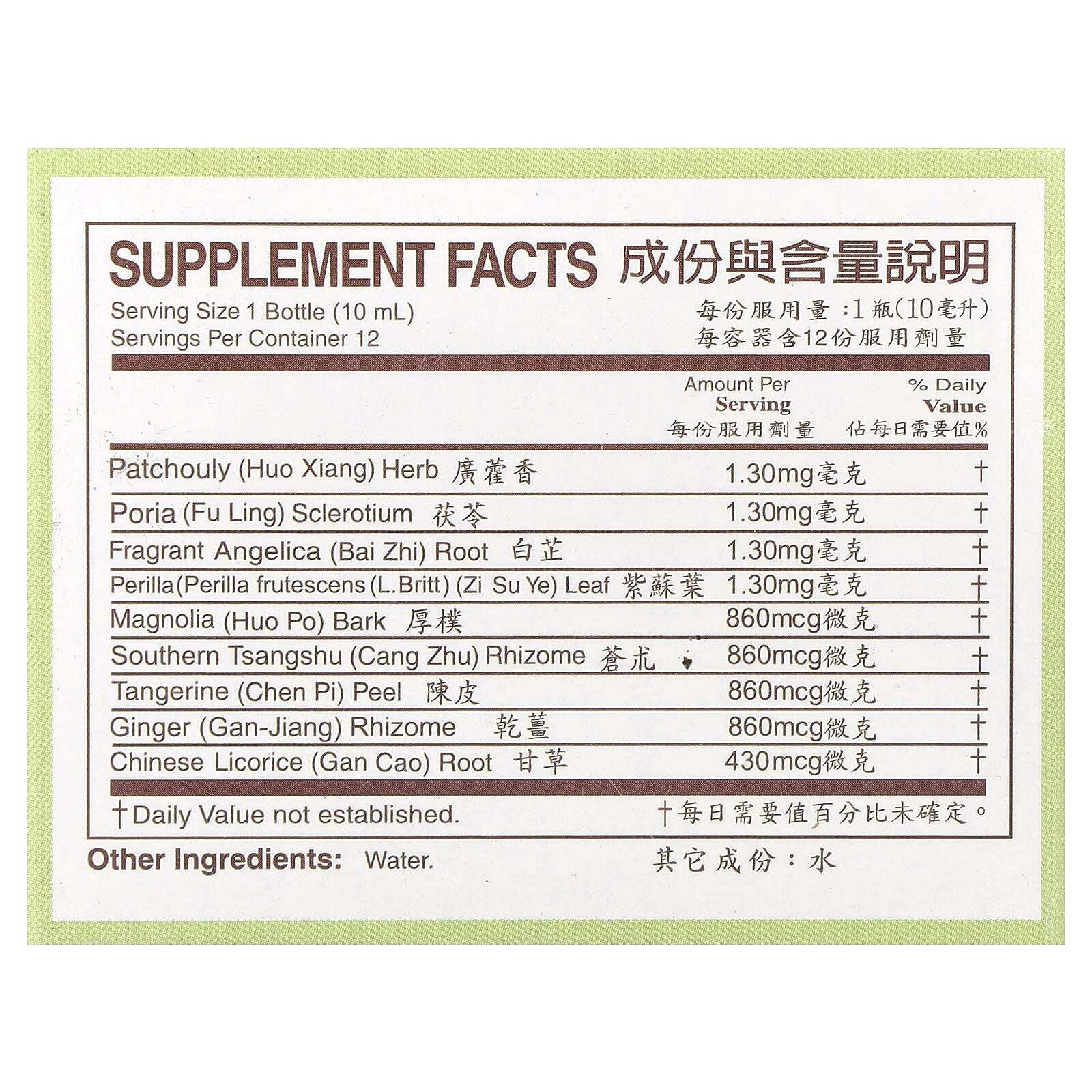 Huo Hsiang Cheng Chi Shuei способствует здоровым функциям организма и поддерживает здоровье и регуляцию работы иммунной, дыхательной и желудочно-кишечной систем.
