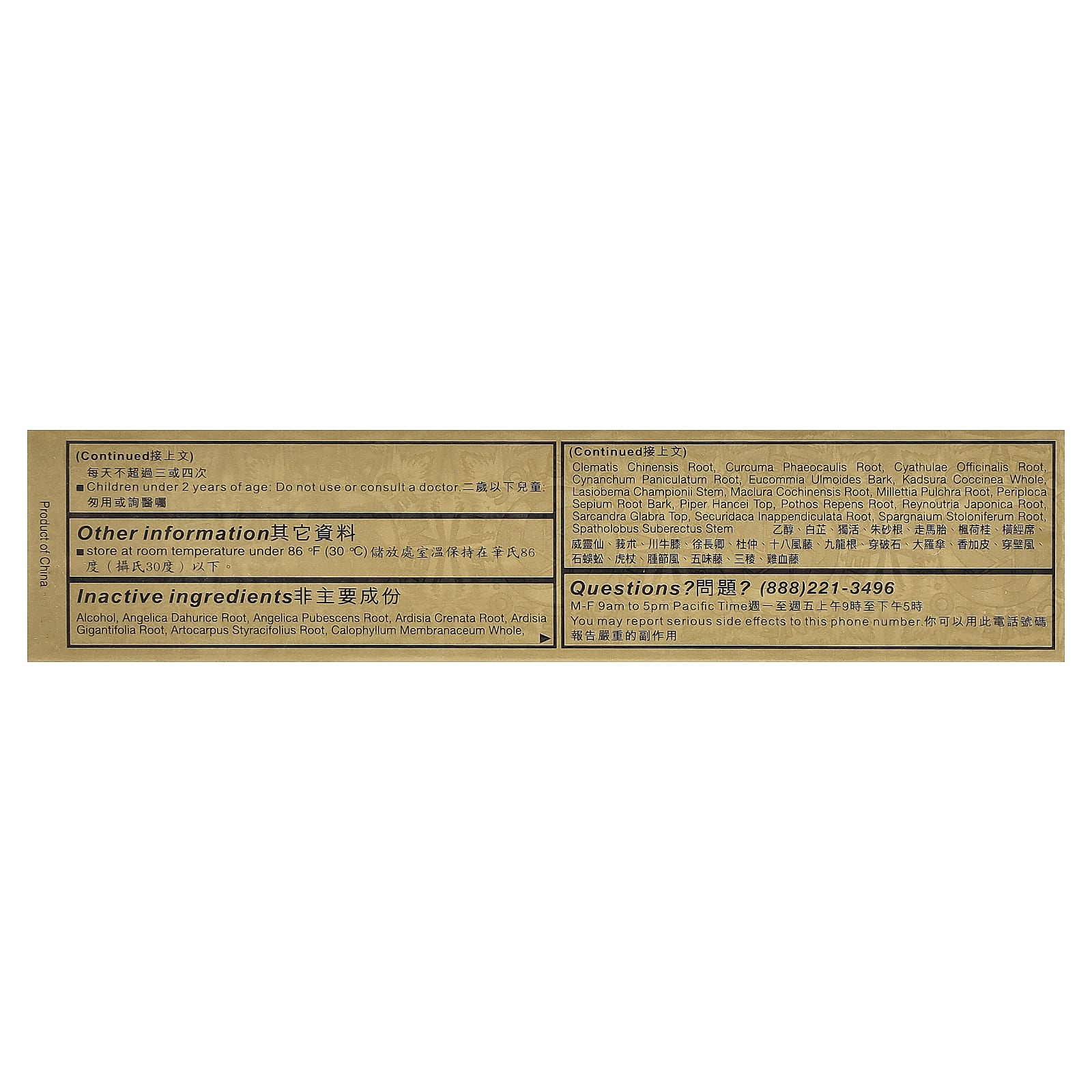 | спирт, корень дудника даурского (Angelica dahurice), корень дудника (Angelica pubescens), корень ардизии (Ardisia crenata), корень ардизии гигантской (Ardisia gigantifolia), корень артокарпуса (Artocarpus styracifolius), калофиллум (Calophyllum membranaceum), корень клематиса китайского (Clematis chinensis), корень куркумы (Curcuma phaeocaulis), корень циани (Cyathulae officinalis), корень цинанхума (Cynanchum paniculatum), кора эукоммии (Eucommia ulmoides coccine), кадсура цельная стебля ласиобемы чемпионки (Lasiobema Championii), корня маклюры кошениленосной (Maclura cochinensis), корня тысячелистника (Millattia pulchra), коры корня сепии (Piper hancei), корня рейнутрии японской (Pothos repens), корня рейнутрии японской (Sarcandra glabra), корня секуридаки (Securidaca inappendiculata), корня спирулины (Spargnaium stoloniferum), стебля спатолоба (Spatholobus suberectus). | |
