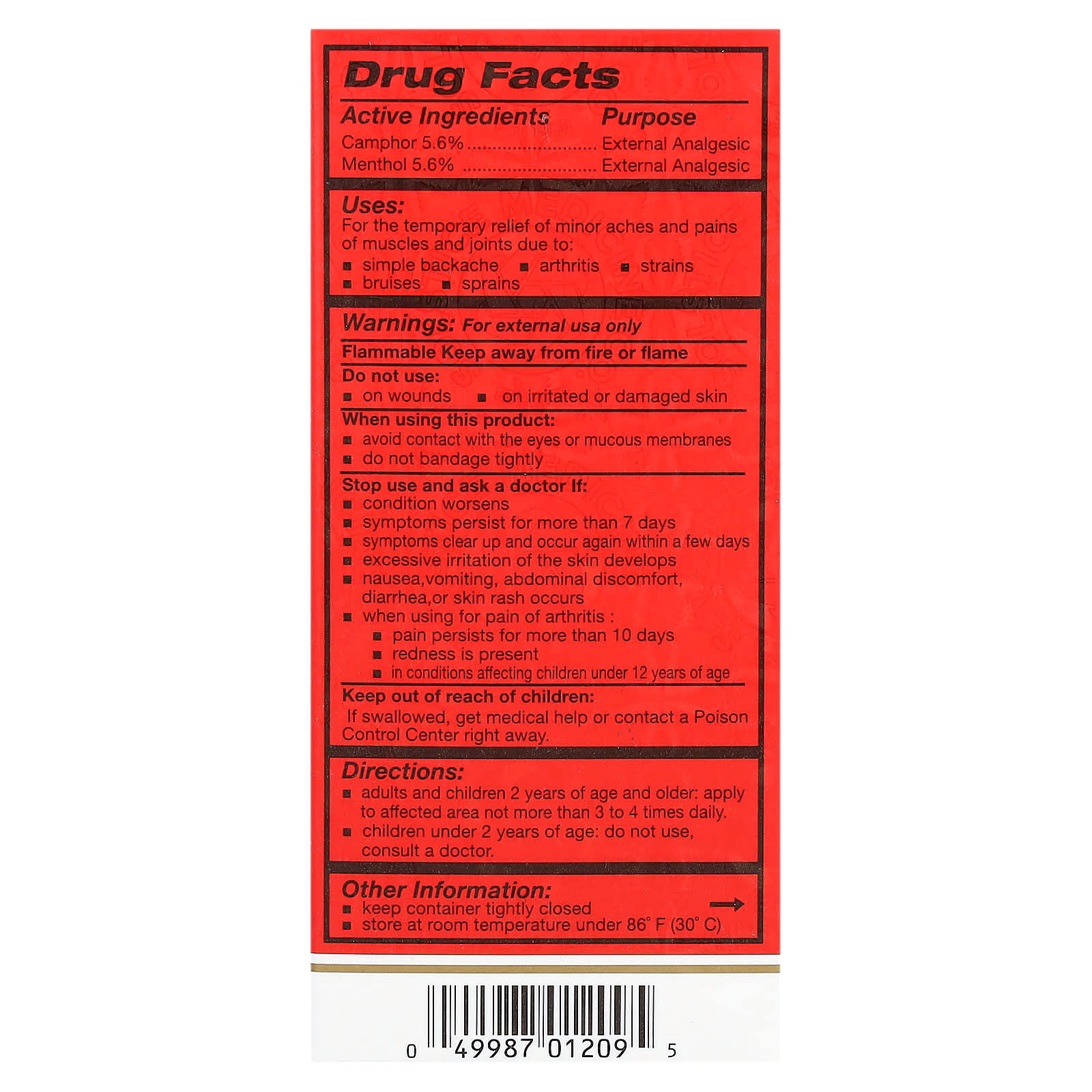 | Камфора — 5,6% Ментол — 5,6% | Наружный анальгетик Наружный анальгетик |