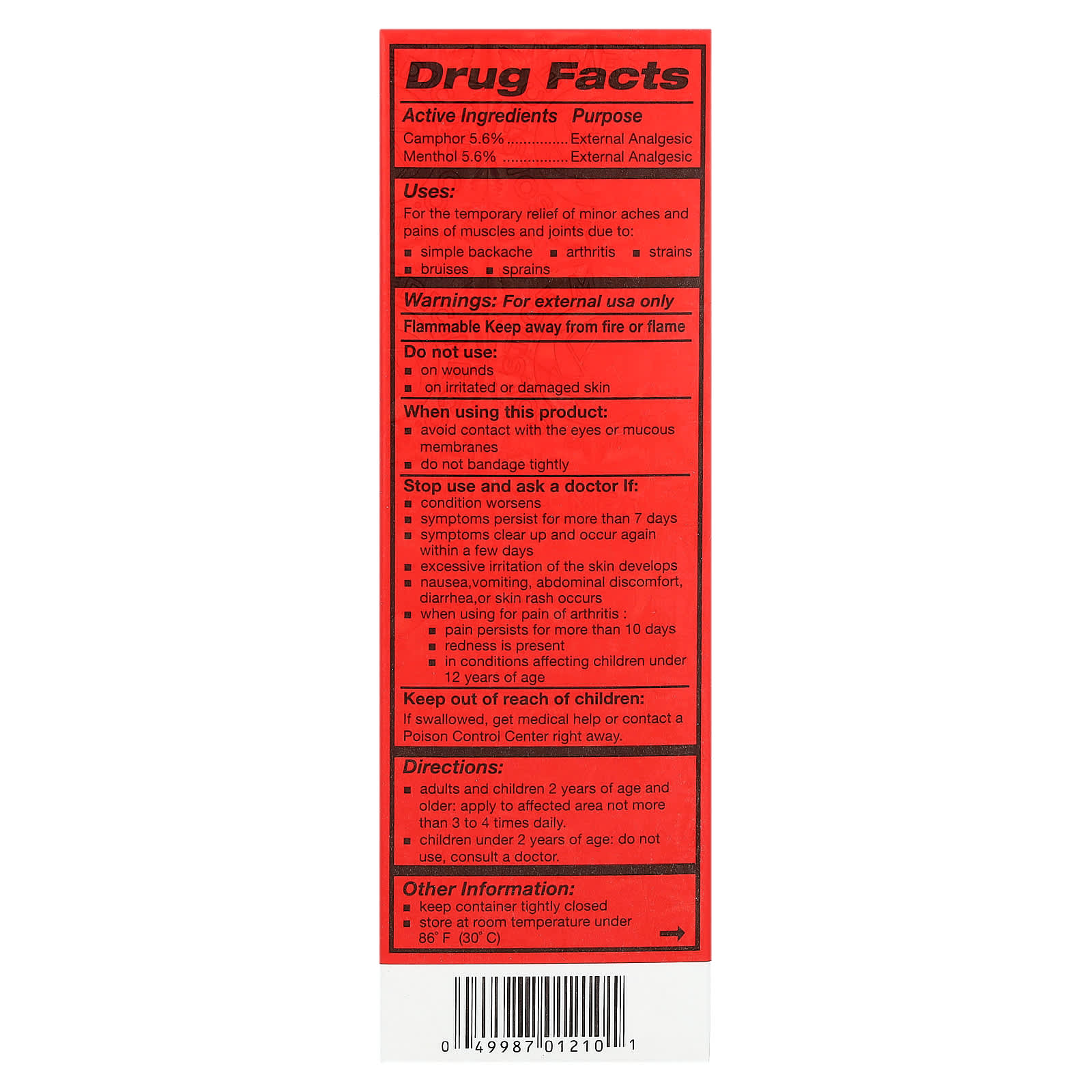 | Камфора — 5,6% | Наружный анальгетик |