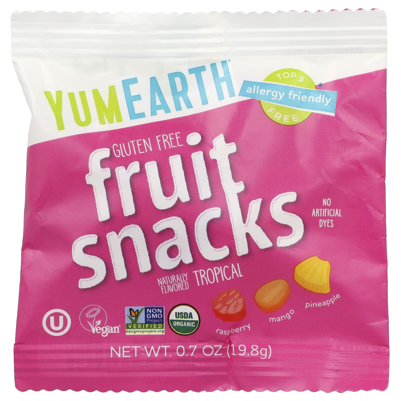 YumEarth, фруктовые снеки без глютена, со вкусом тропических фруктов, 35 упаковок по 19,8 г (0,7 унции)