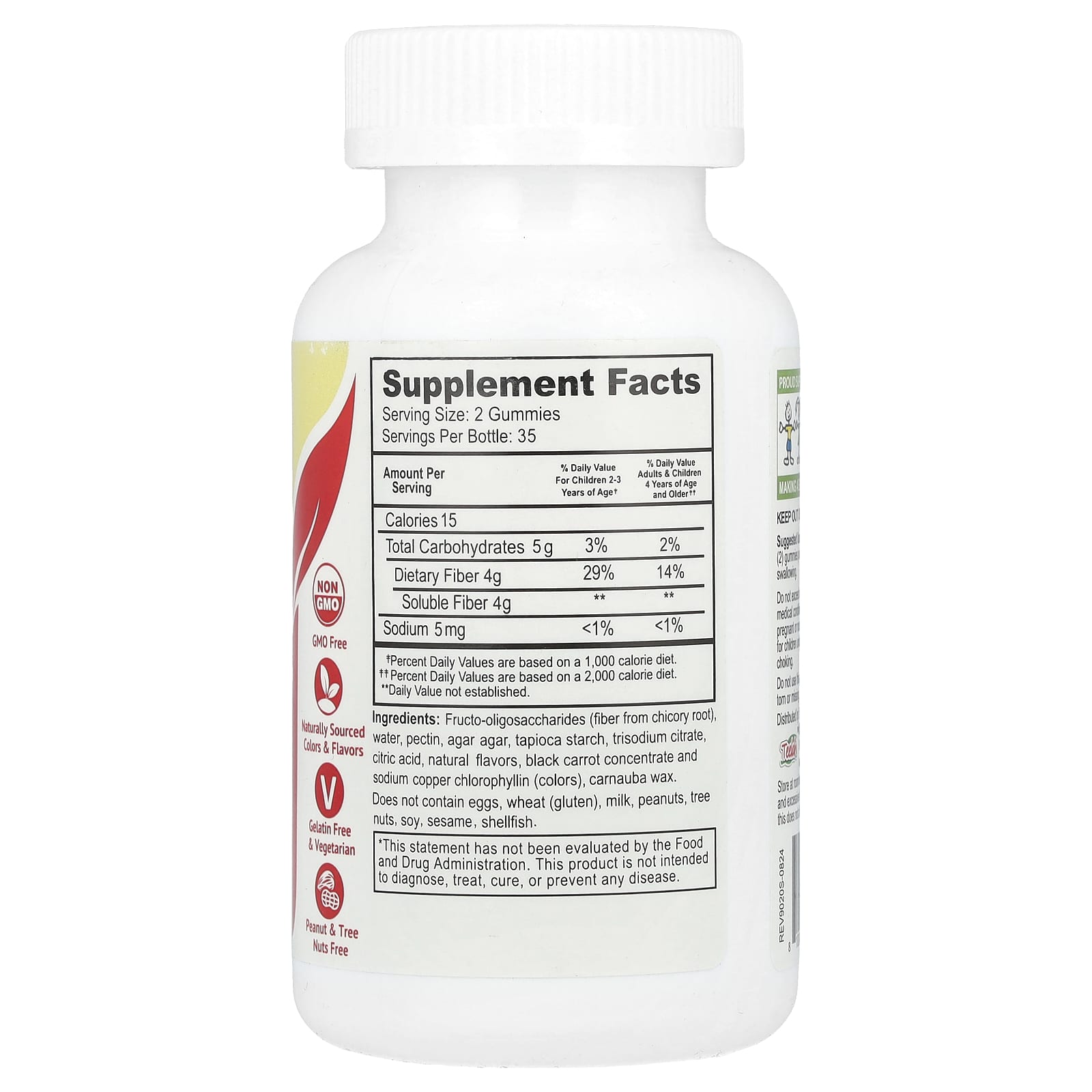 Фруктоолигосахариды (клетчатка из корня цикория), вода, пектин, агар-агар, тапиоковый крахмал, тринатриевый цитрат, лимонная кислота, натуральные ароматизаторы, концентрат черной моркови и хлорофиллин натрия и меди (красители), карнаубский воск.