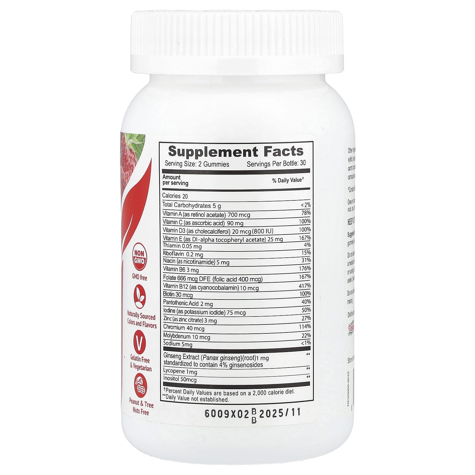| Фолат | 666 мкг DFE (фолиевая кислота 400 мкг) | 167% |