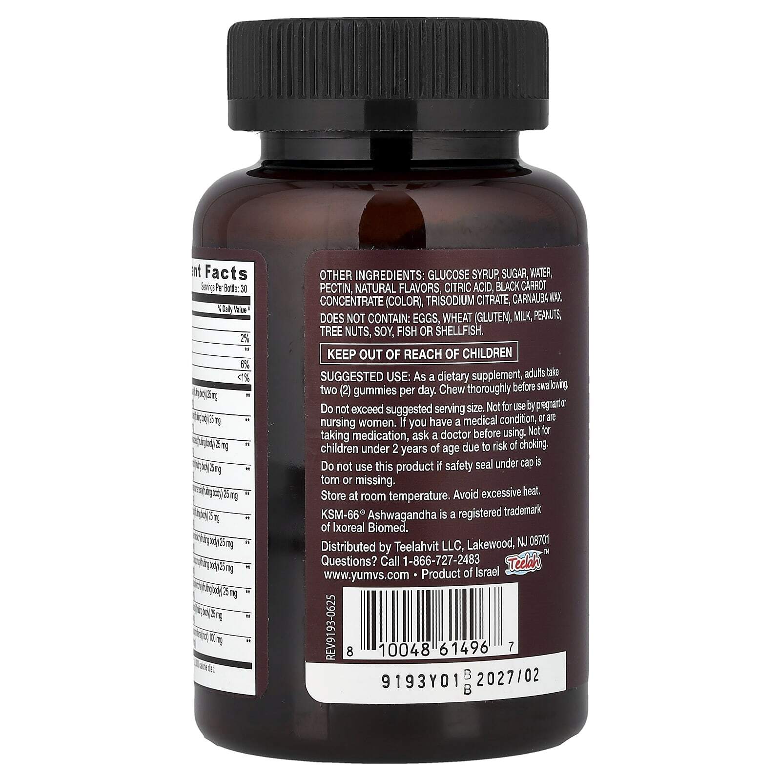 Крахмальная патока, сахар, вода, пектин, натуральные ароматизаторы, лимонная кислота, концентрат черной моркови (краситель), тринатриевый цитрат, карнаубский воск.
