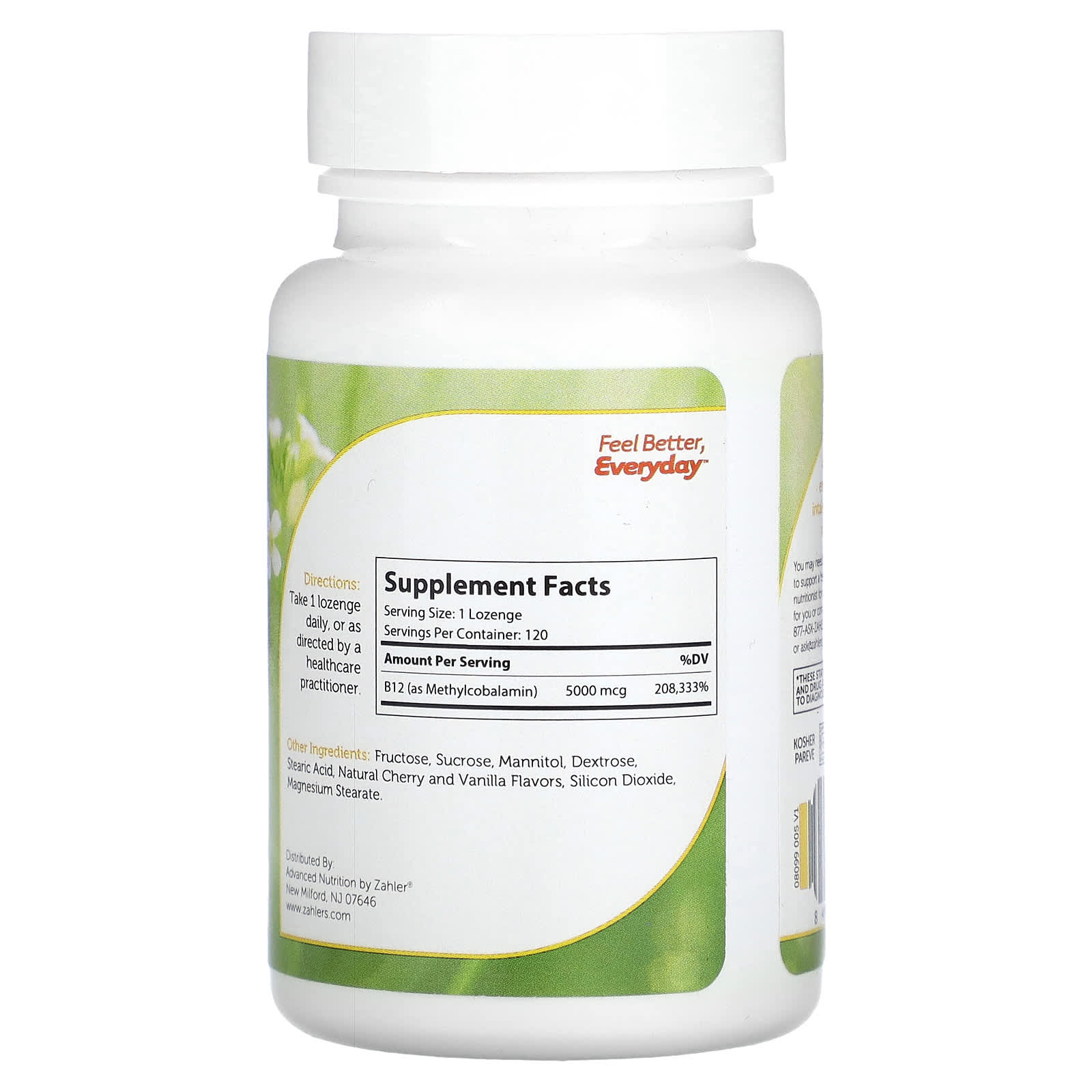 B12 Energizer + ™ от Zahler содержит эффективную дозу витамина B12 для быстрого и естественного прилива энергии. Как и другие водорастворимые витамины, избыток B12 выводится из организма, а не сохраняется в организме, поэтому его постоянное поступление полезно.