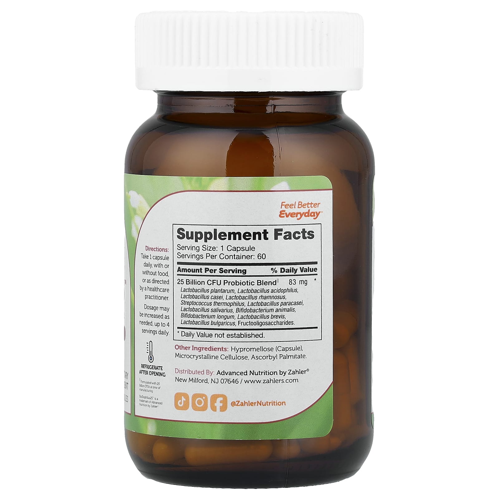 Благодаря запатентованной смеси из 11 штаммов пробиотиков и пребиотиков, Zahler® BioDophilus25™ помогает поддерживать лучшее пищеварение, а также может способствовать заселению кишечника полезными бактериями, помогая поддерживать здоровье иммунной системы.