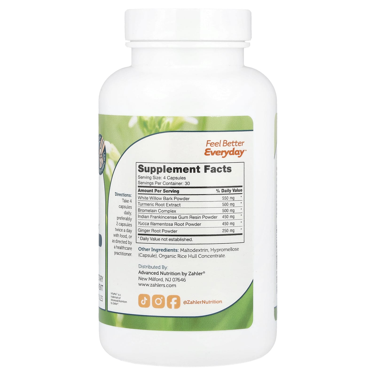 InflaMix™ от Zahler содержит комбинацию ингредиентов, которые облегчают боль и способствуют здоровой воспалительной реакции после физических нагрузок. Правильный приём добавок поддерживает естественный процесс восстановления организма.