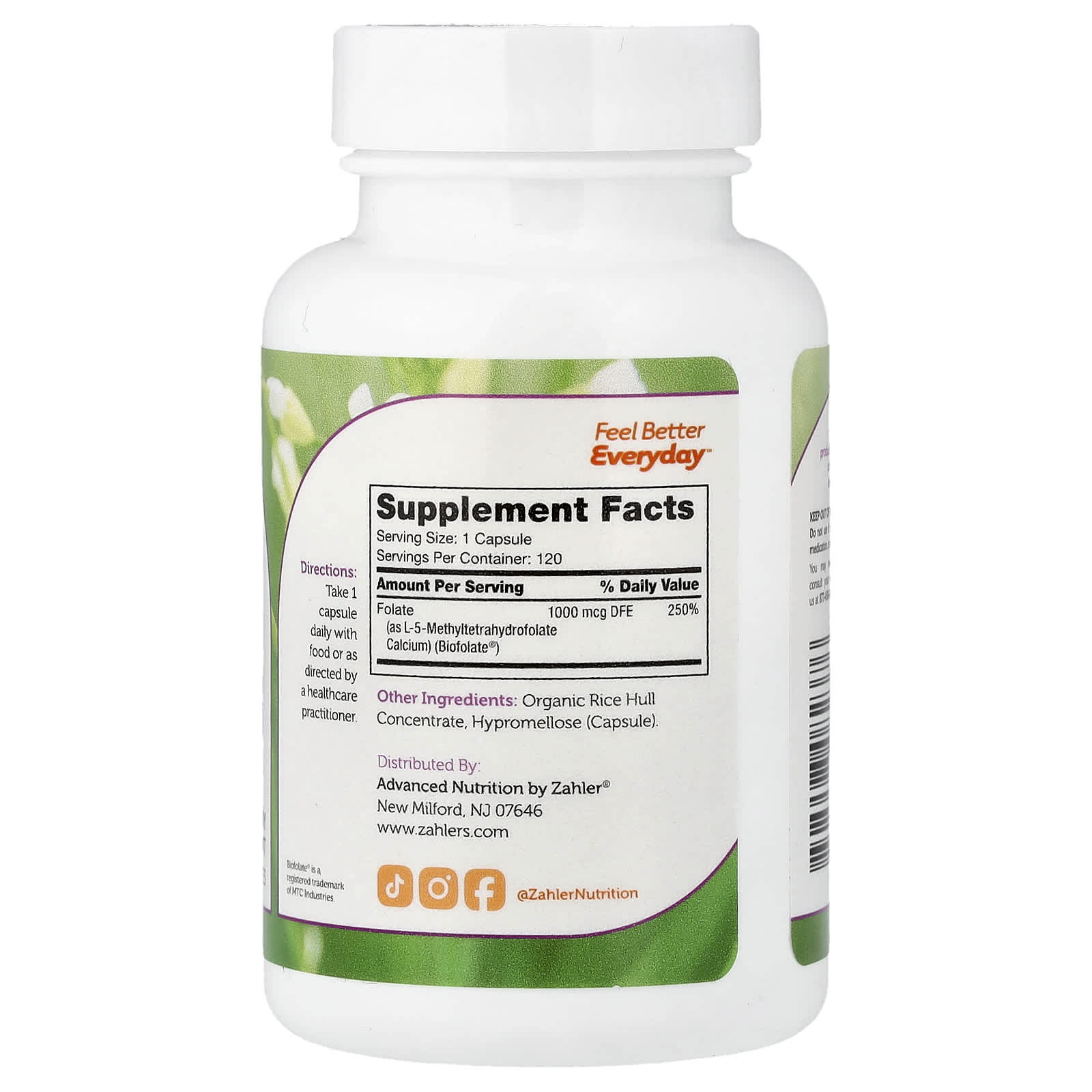 | Фолат (в виде L-5-метилтетрагидрофолата кальция)(BioFolate®) | 1000 мкг DFE | 250% |