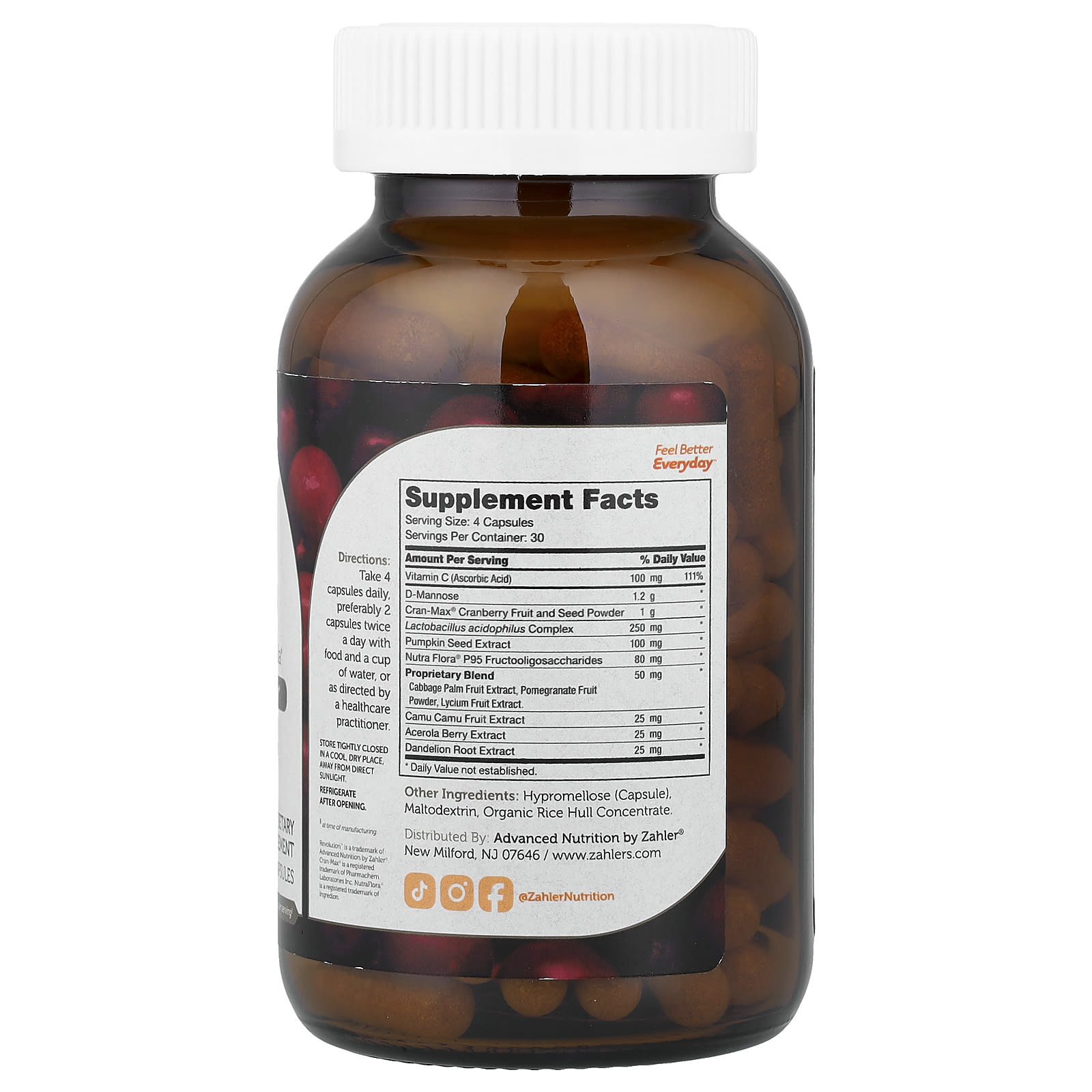 Revolution™ содержит эффективную комбинацию натуральных ингредиентов, таких как наша запатентованная смесь суперфруктов, D-манноза, клюква, пребиотики и пробиотики, которые поддерживают здоровье мочевыводящих путей.