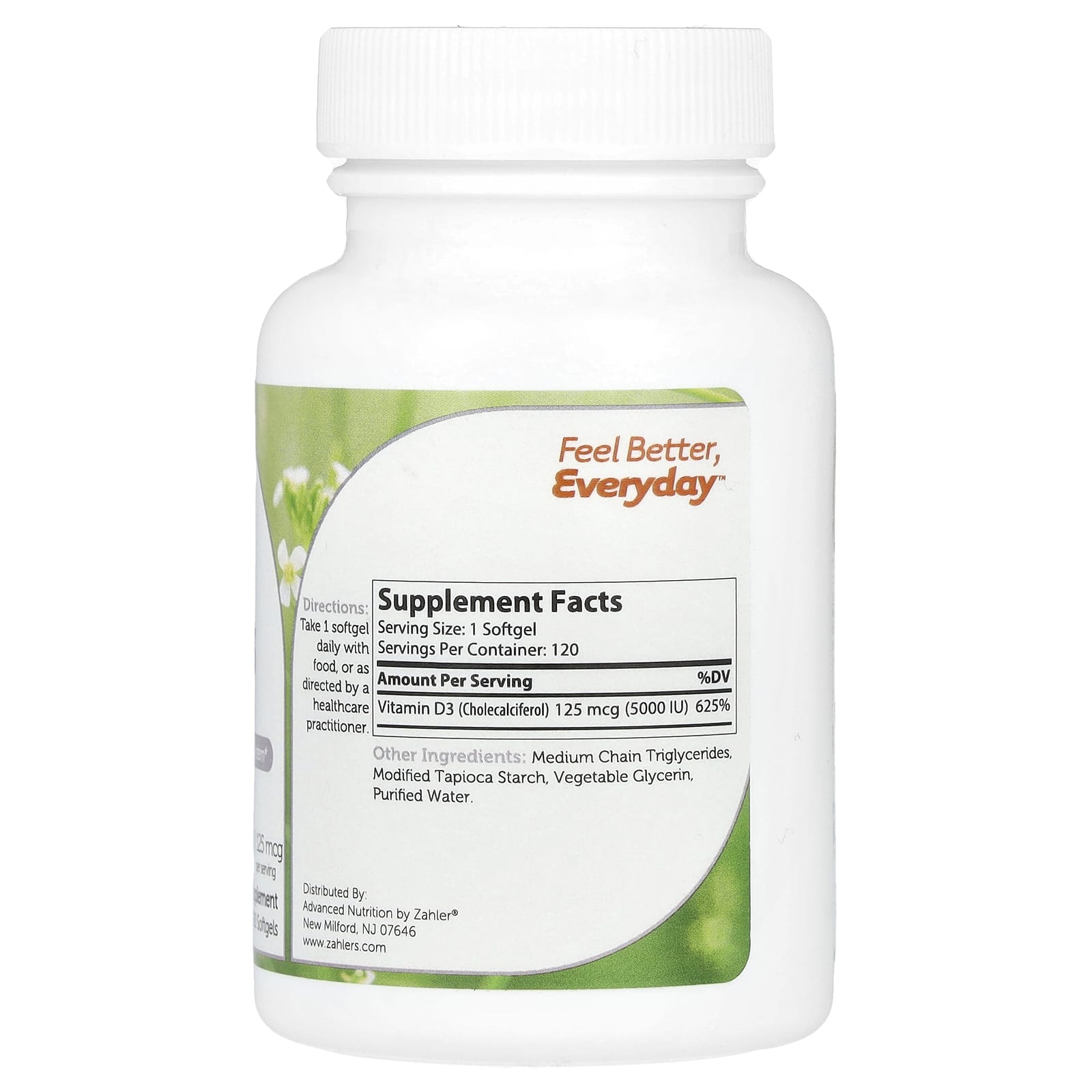 Zahler, витамин D3, улучшенная формула с витамином D3, 125 мкг (5000 МЕ), 120 мягких таблеток