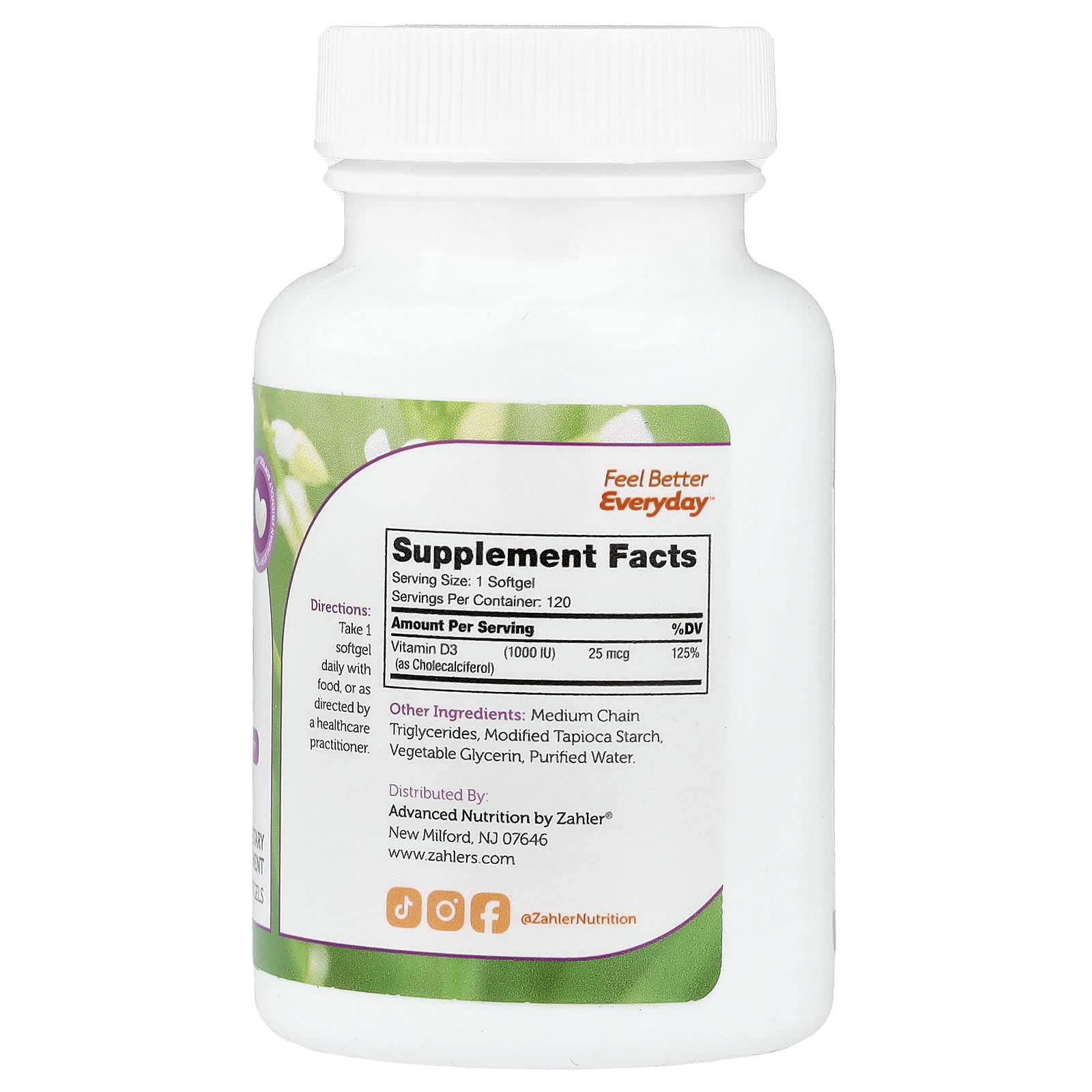 Zahler, витамин D3, 25 мкг (1000 МЕ), 120 капсул