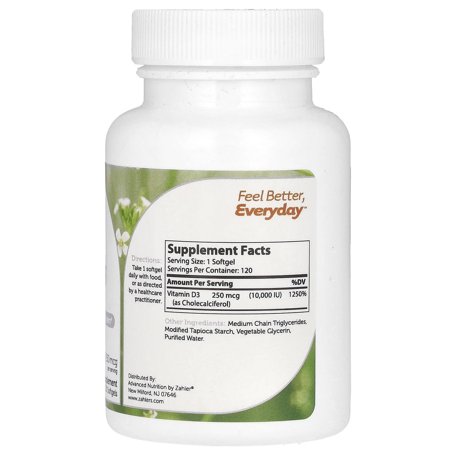 Zahler, Витамин D3, улучшенная формула D3, 250 мкг (10 000 МЕ), 120 мягких таблеток