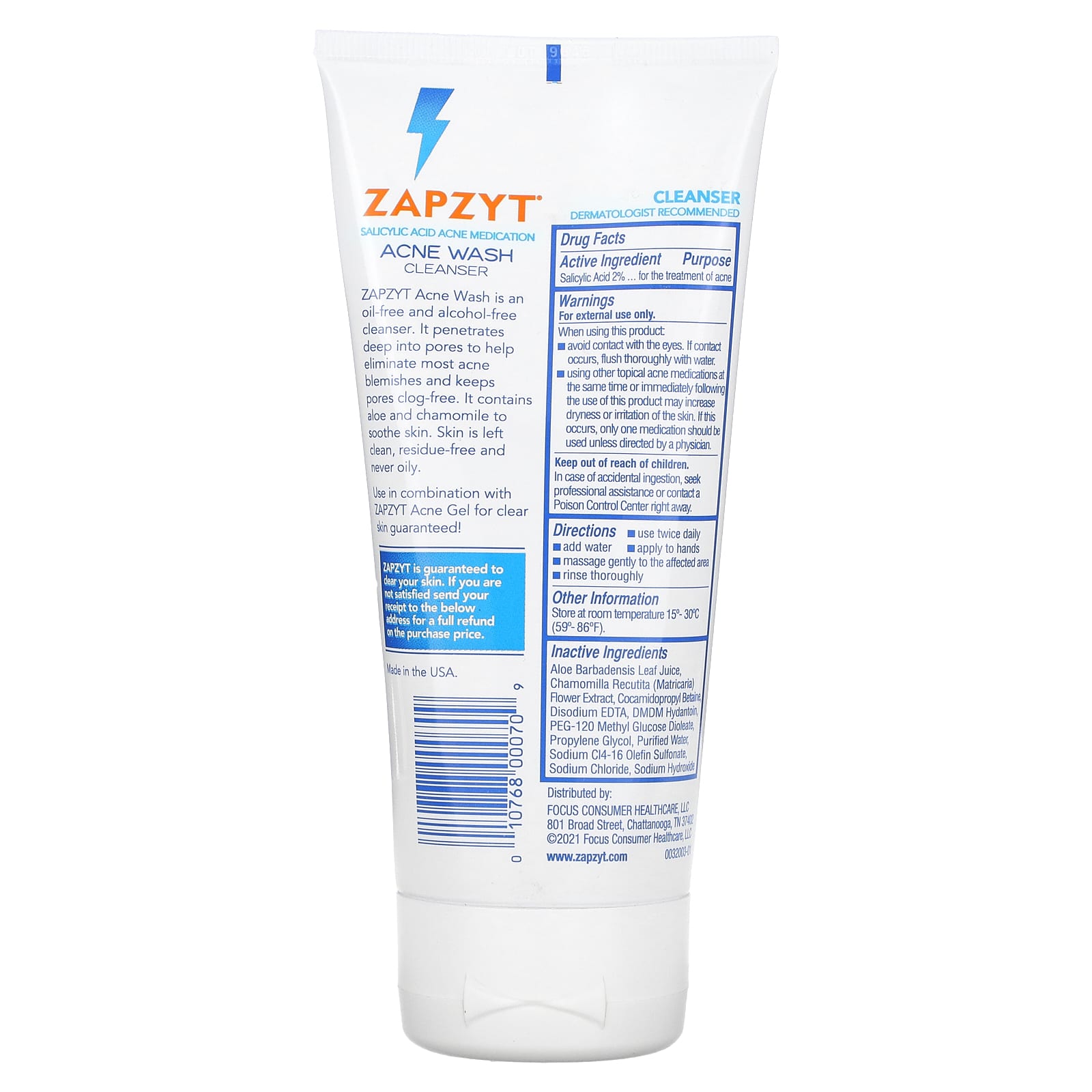 ZAPZYT Acne Wash — не содержащее масла и спирта очищающее средство. Он проникает глубоко в поры, помогая устранить большинство акне и очищая поры. Содержит алоэ и ромашку, успокаивающие кожу. Кожа очищается, не оставляет следов и никогда не становится жирной.